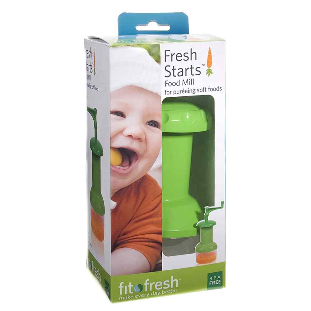Prepare baby food on the go with this handy food mill. It allows you to puree fruits, veggies, and meats into your own homemade baby food. Easily grind food into your baby's preferred texture and consistency, and store it in the reusable container for easy transport.