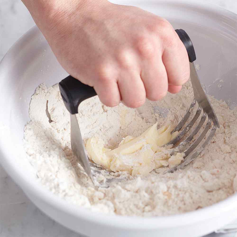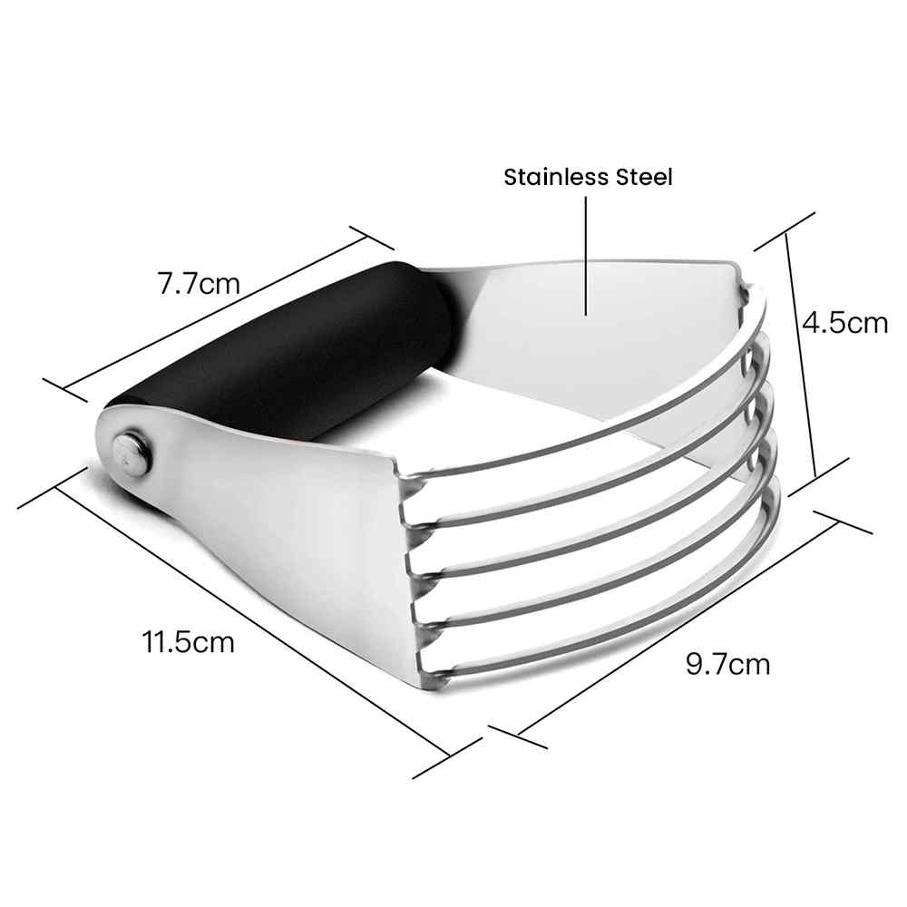 Get ready for better texture and taste from all of your baked goods. This Professional Dough Blender is an ideal tool for cutting butter or margarine and working it into dry ingredients, like flour and sugar. Sturdy stainless steel blades blend ingredients thoroughly, while the soft handle absorbs pressure for a comfortable grip.