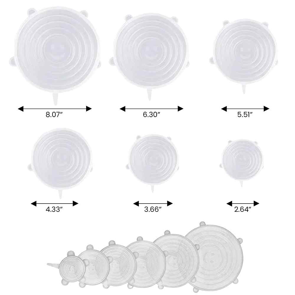 • Six (6) Reusable Silicone Stretch Lids in six (6) sizes: