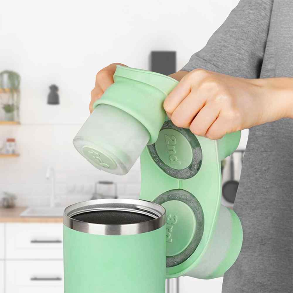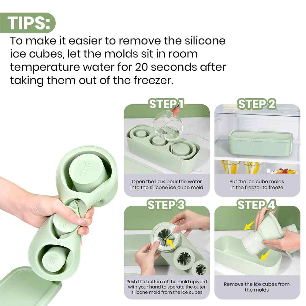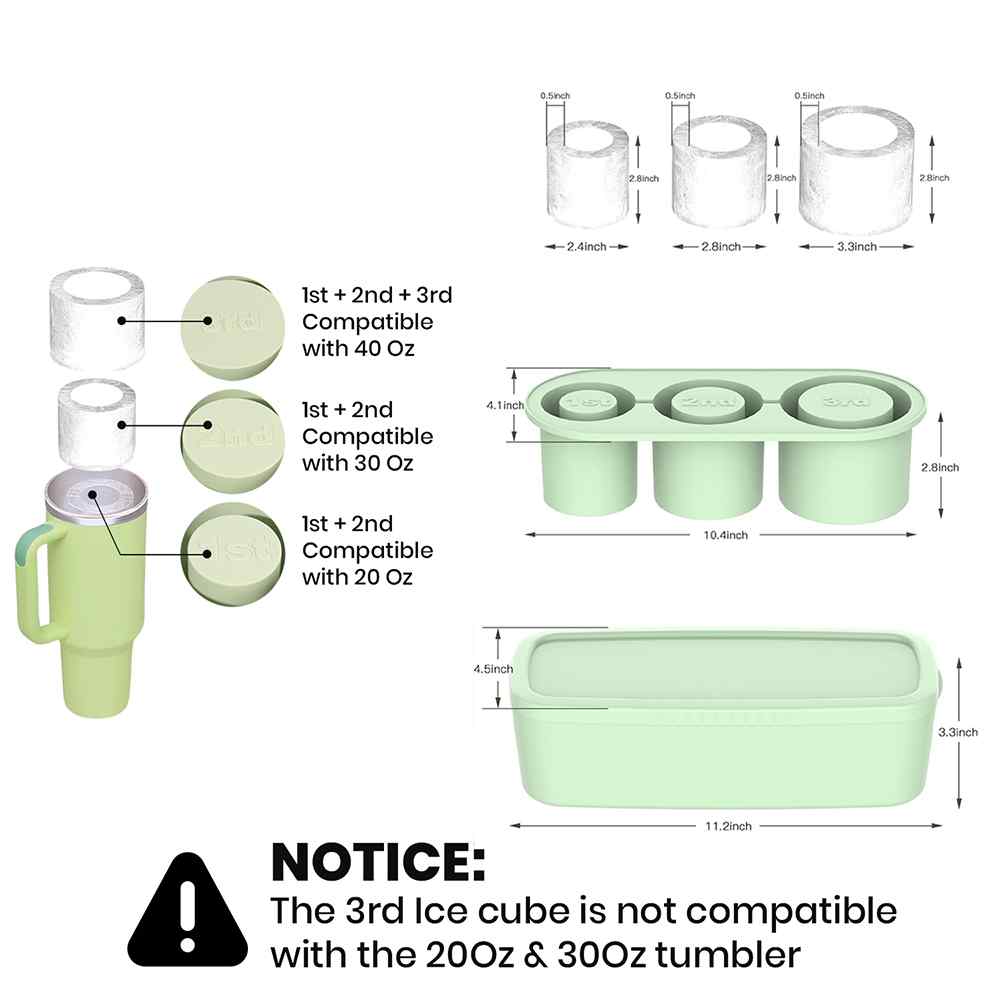 A specially designed ice cube mold that’s compatible with 40 oz tumbler cups. This mold creates three large ice cubes to help your drinks stay cold for longer periods. The oversized ice cubes melt slowly, ensuring your beverage remains undiluted and preserving its original taste and quality.