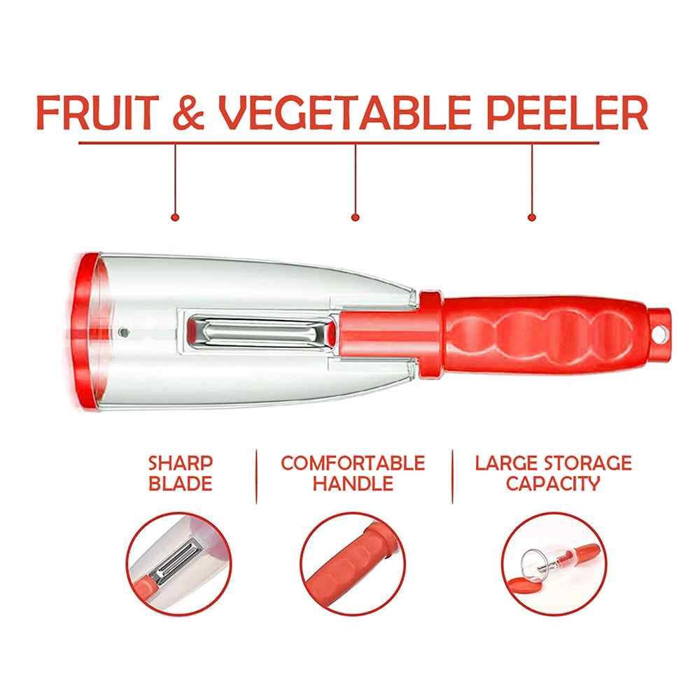 Peel a wide variety of fruits and vegetables with minimum fuss. This vegetable peeler has a stainless steel blade that easily removes the skins from potatoes, apples, cucumbers, and more. A storage box is attached, so you can keep your kitchen clean!