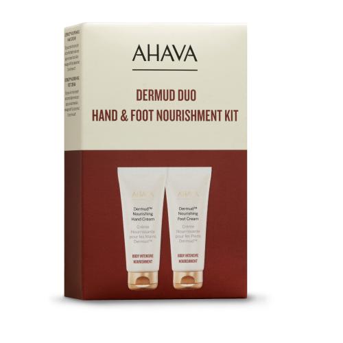 This specialized skincare set features the Dermud™ Nourishing Hand Cream and Foot Cream. The products in this kit are enriched with a patented Dermud™ formula, which includes 'leave on' Dead Sea mud, known for its natural soothing and nourishing properties. Combined with the proprietary skin activator, Osmoter™—a blend of Dead Sea minerals, these creams provide deep hydration and relief.