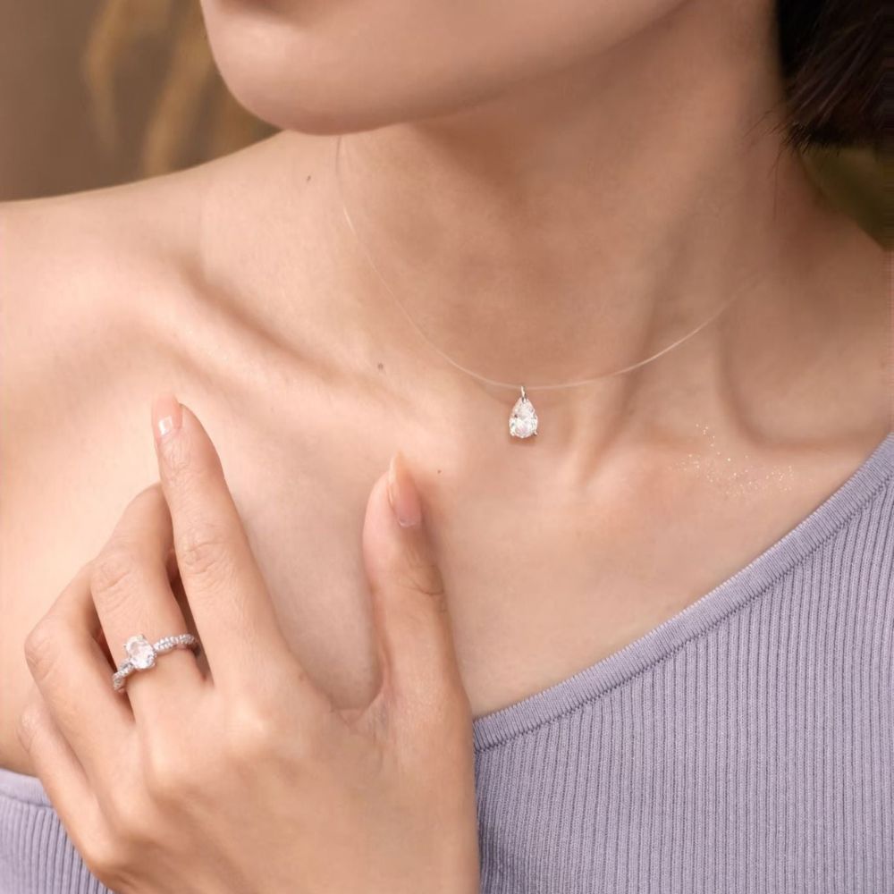 Effortlessly chic, the Illusion Drop Necklace creates the captivating look of a diamond floating against your skin, featuring a stunning 1.5-carat, pear-shaped diamond crystalline. The stone is suspended on a nearly invisible cable for a modern, ethereal effect. The ideal balance of simplicity and brilliance, this necklace is designed to be worn solo for a delicate statement or layered with other favorites for elevated style.