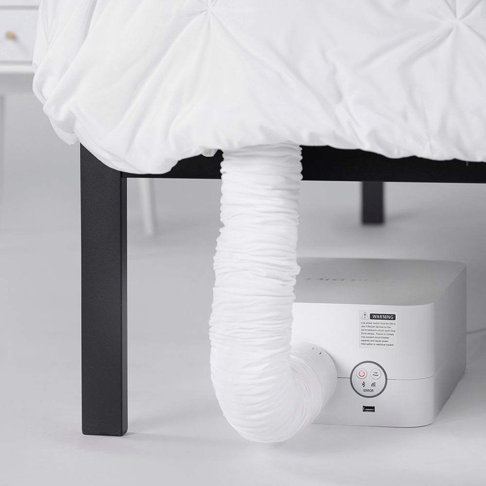 *BedJet 3 is not an air conditioner, nor a substitute for zero air conditioning in extreme heat (+78°F) bedrooms. A room temp below 78°F is recommended for best cooling performance