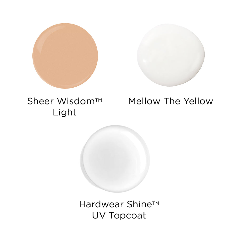 • Start by applying Sheer Wisdom Nail Moisturizer as a base coat to hydrate, strengthen, and give nails a soft, natural finish