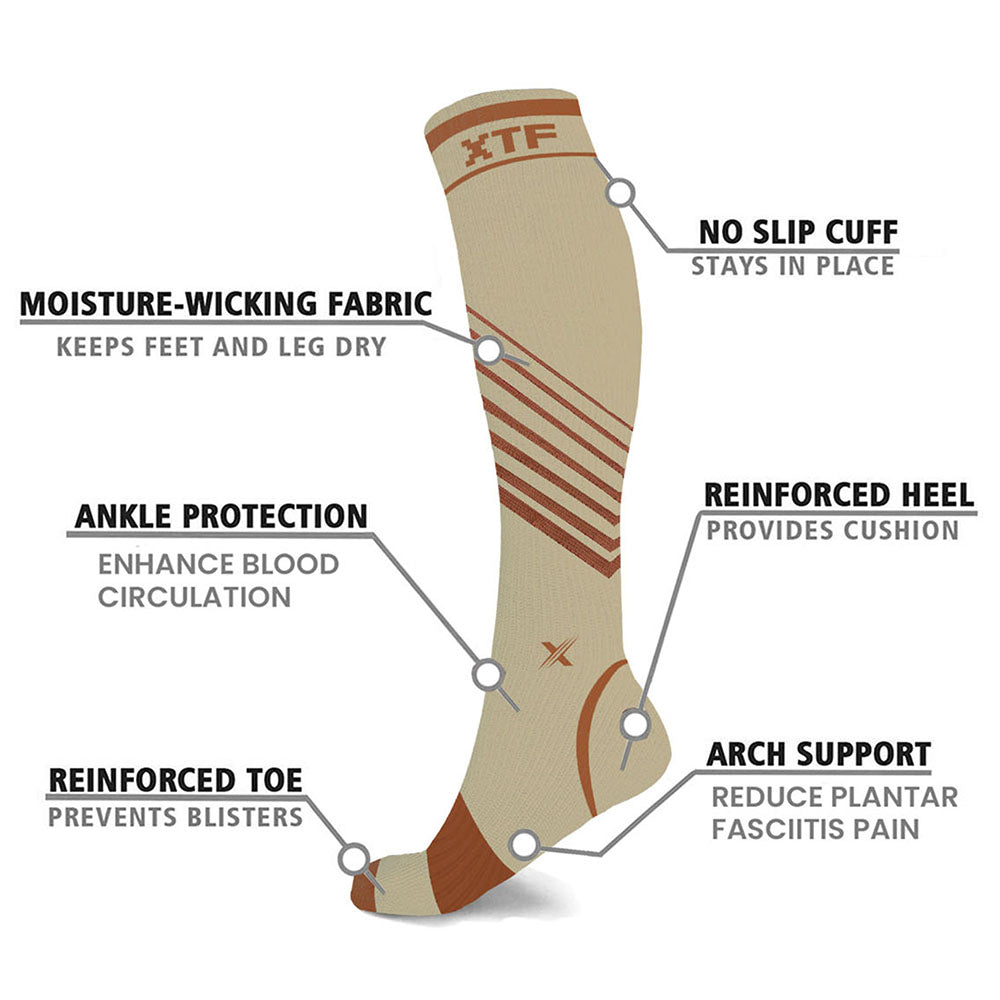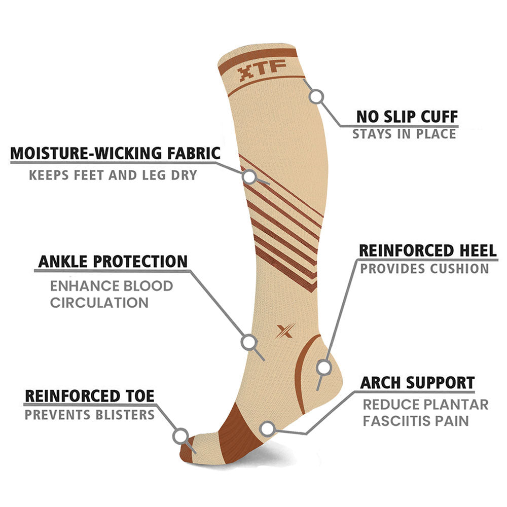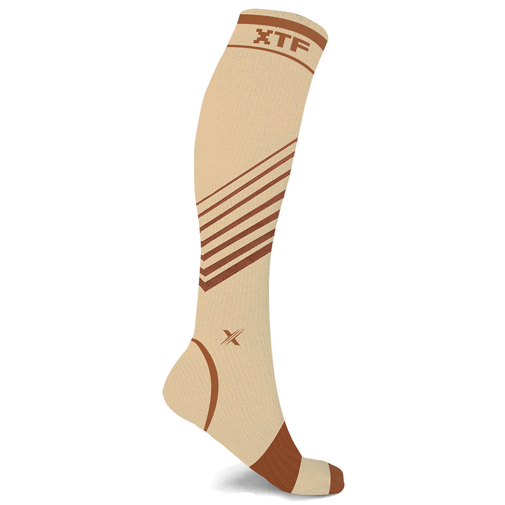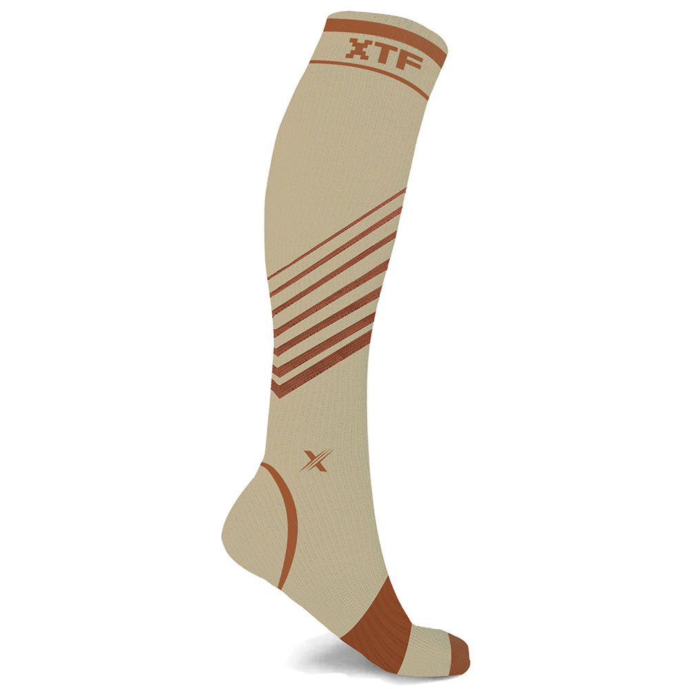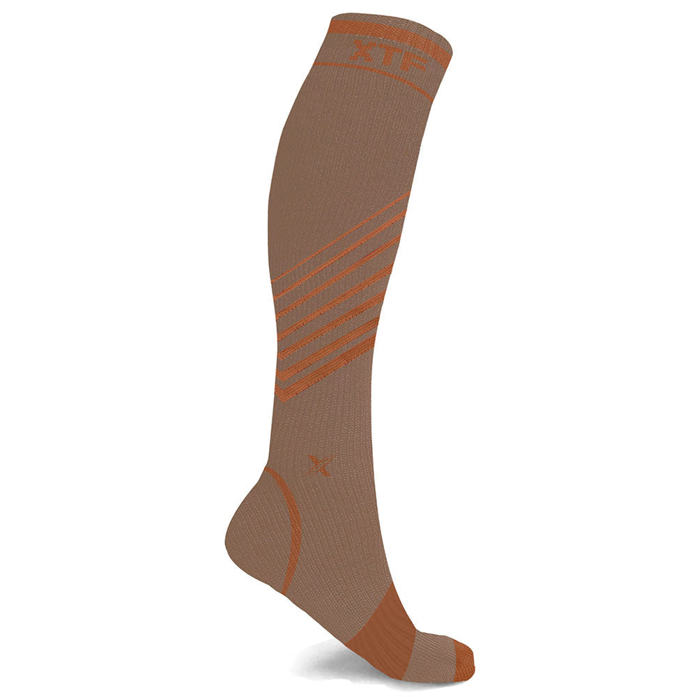 • Includes one (1) pair of Copper-Infused V-Striped Knee-High Compression Socks in size and color of your choice