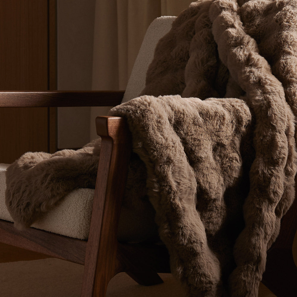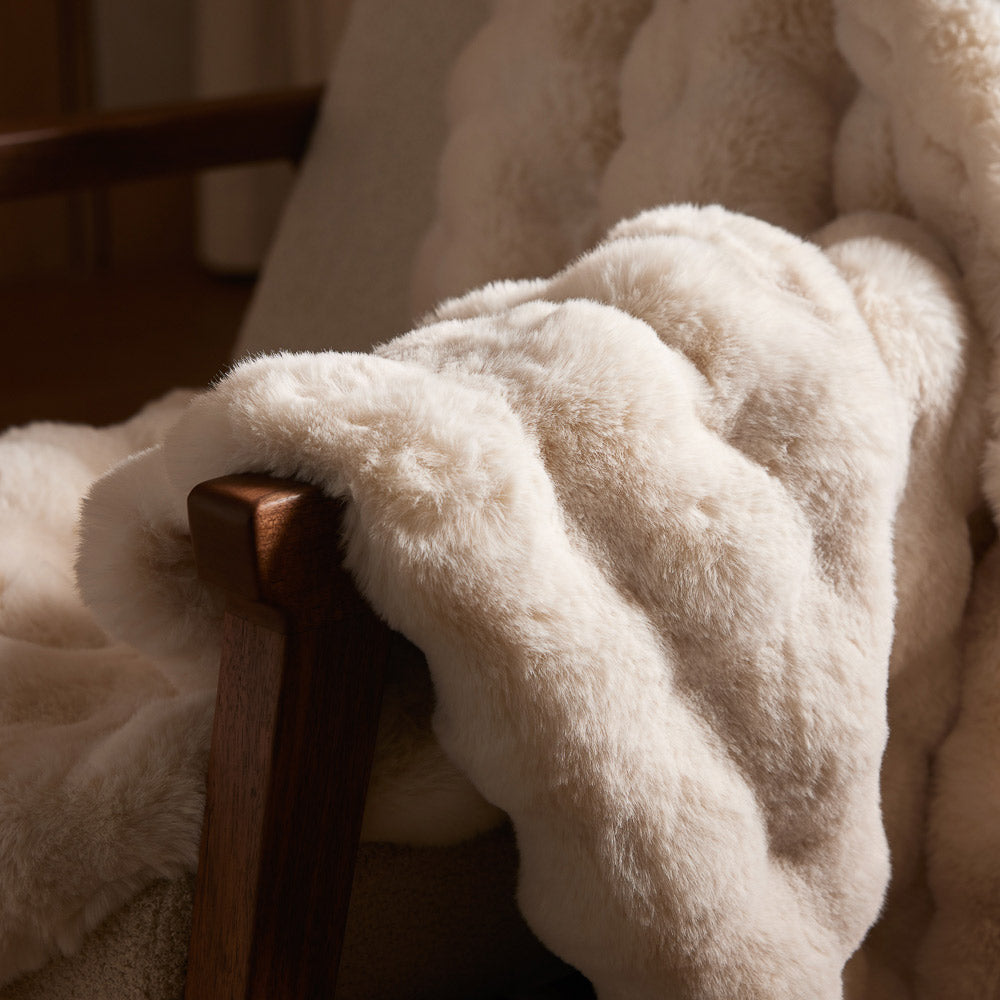 Lose yourself in luxury with the Bubble Cuddle Blanket. It offers a combination of comfort and style with its distinctively textured bubble design intricately woven from ultra-soft fibers. This faux fur blanket makes the ideal centerpiece for your living room or bedroom.