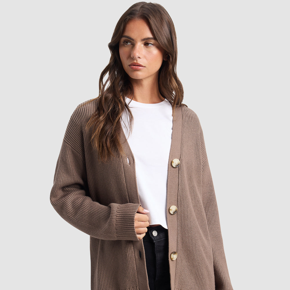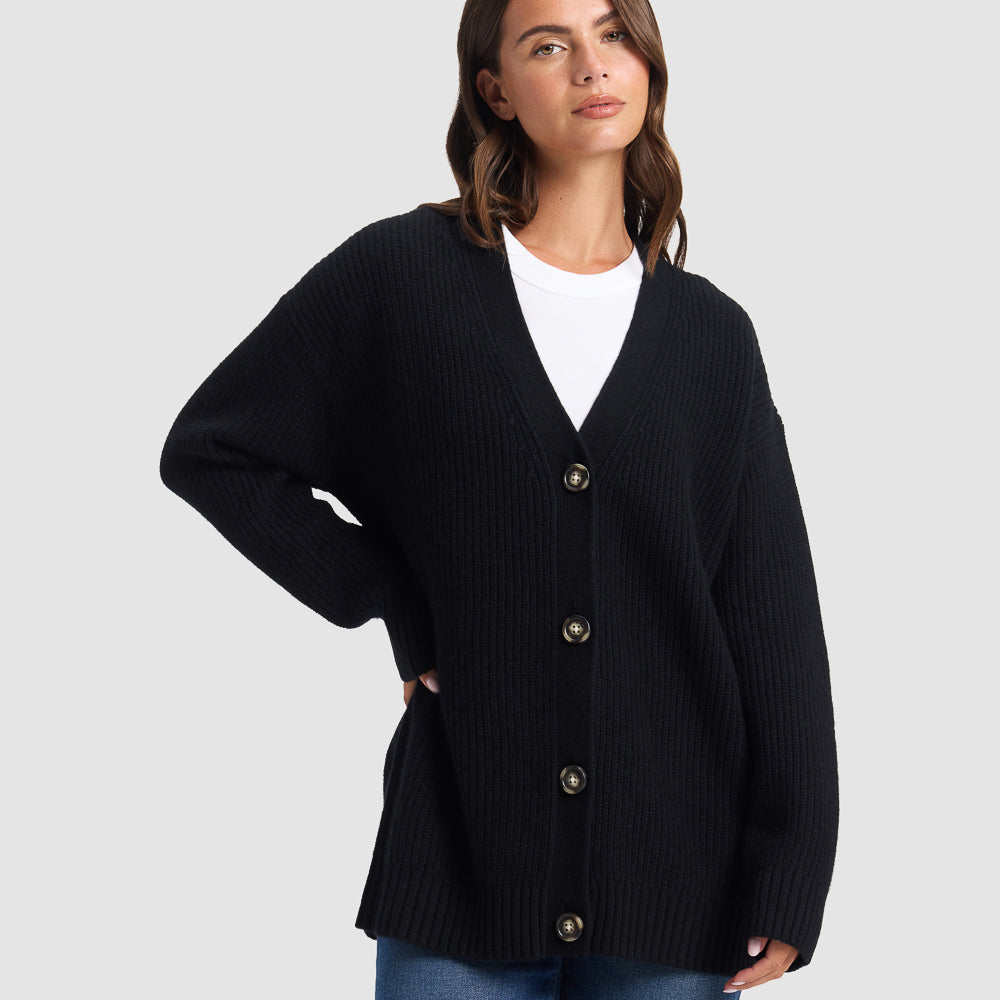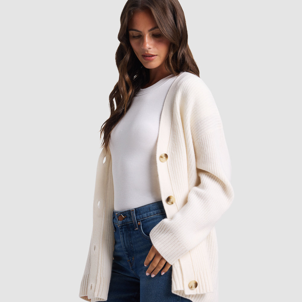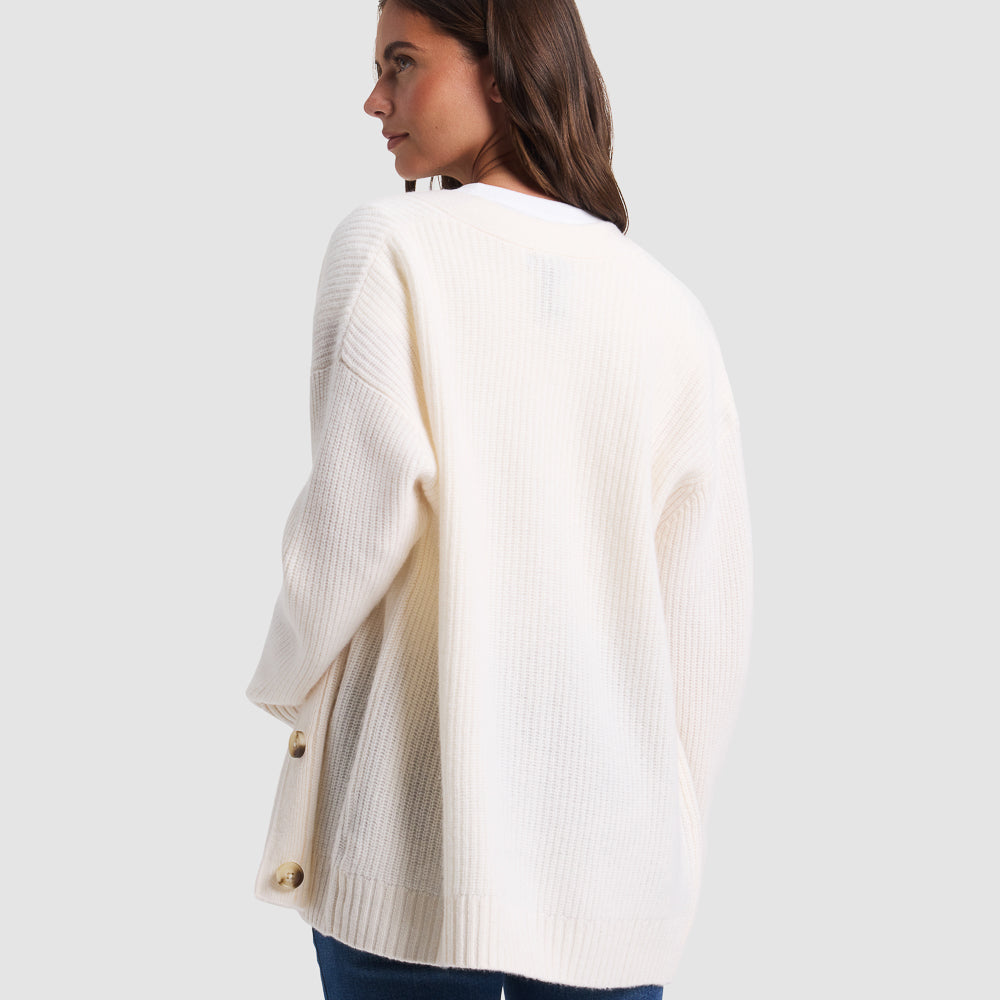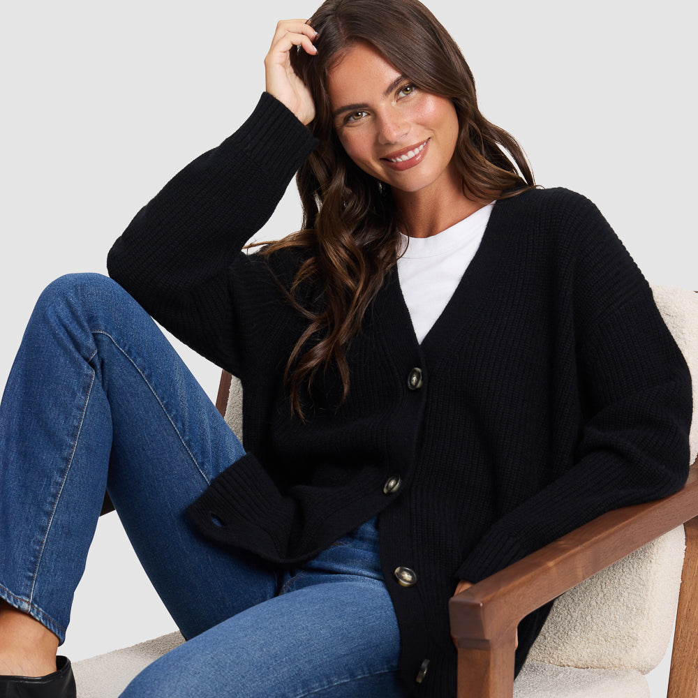 Experience modern luxury with the Sunday Oversized Cashmere Cardigan. Made from 100% cashmere, this ribbed cardigan wraps you in refined comfort and elegance. With an oversized fit, ideal for all-season layering, it’s versatile enough to be dressed up or down.