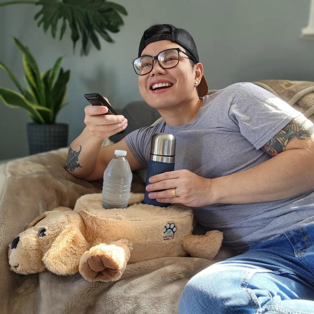 The Cozy Critter Cup Holder is a fun, adorable plush cup holder that keeps your drinks close and safe from spills. With all the benefits of the original Cup Cozy Pillow, it can also hold small essentials like snacks, glasses, remotes, cell phones, and tablets. Use it anywhere—on the couch, in the car, in bed, at the beach, or in the park.