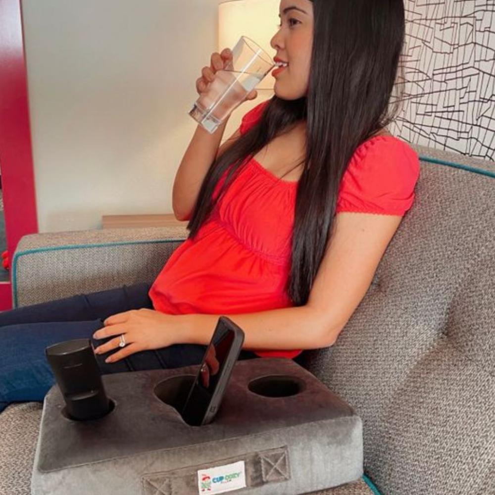 Cup Cozy Pillow created the concept of the "pillow cup holder"—a soft, cushion-style cup holder with expandable cup holes that adapt to almost any size/style of cup or mug. Now you never have to ask "Where am I going to put my drink?"