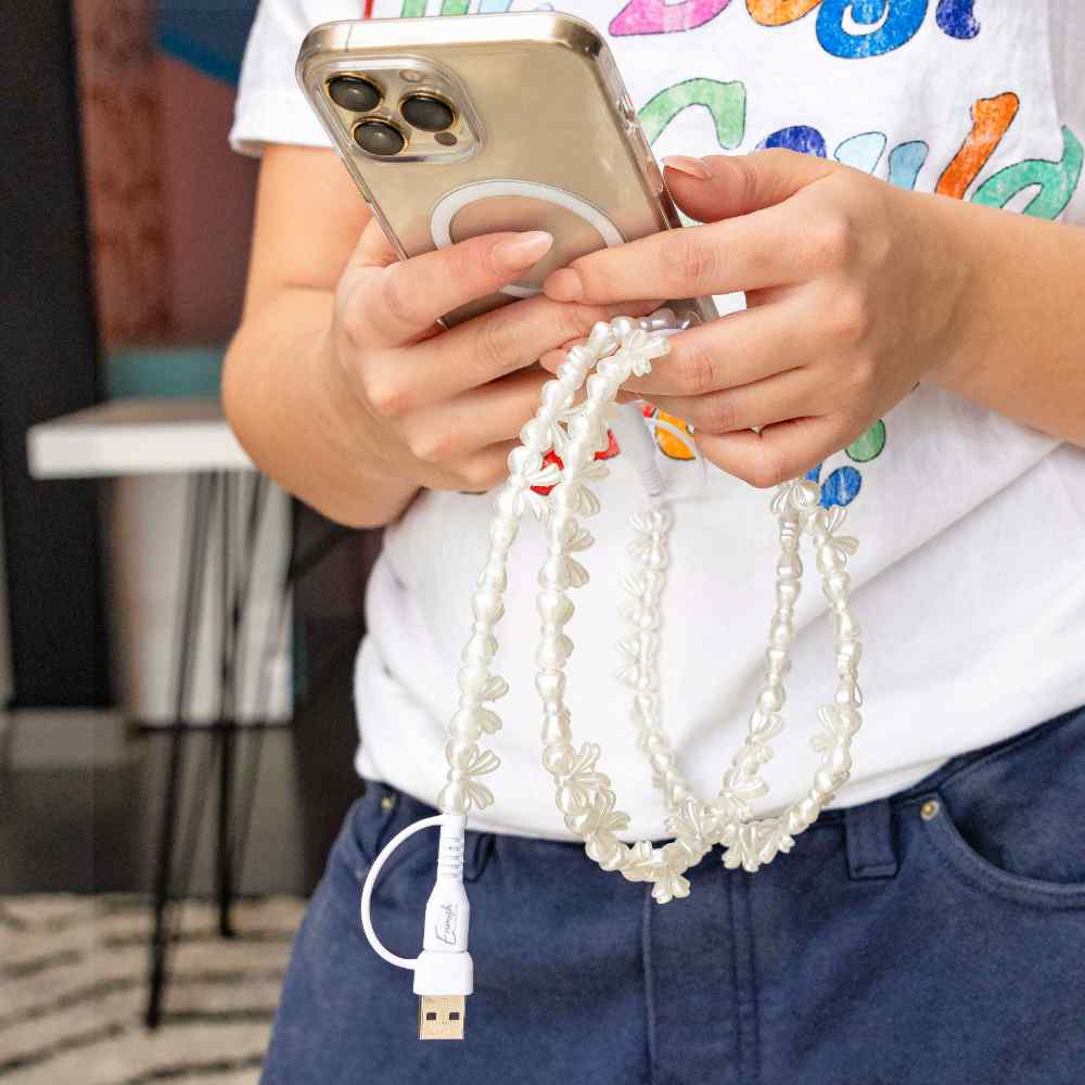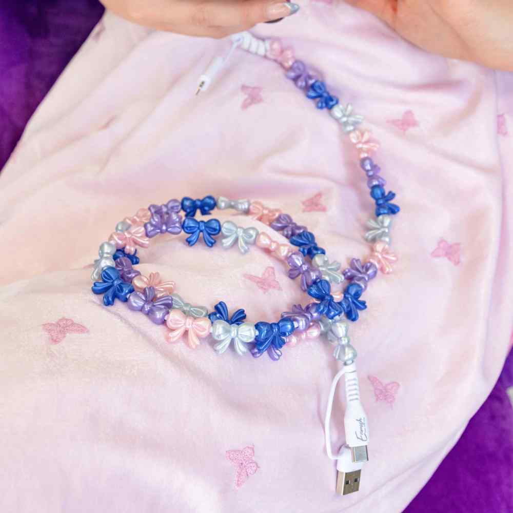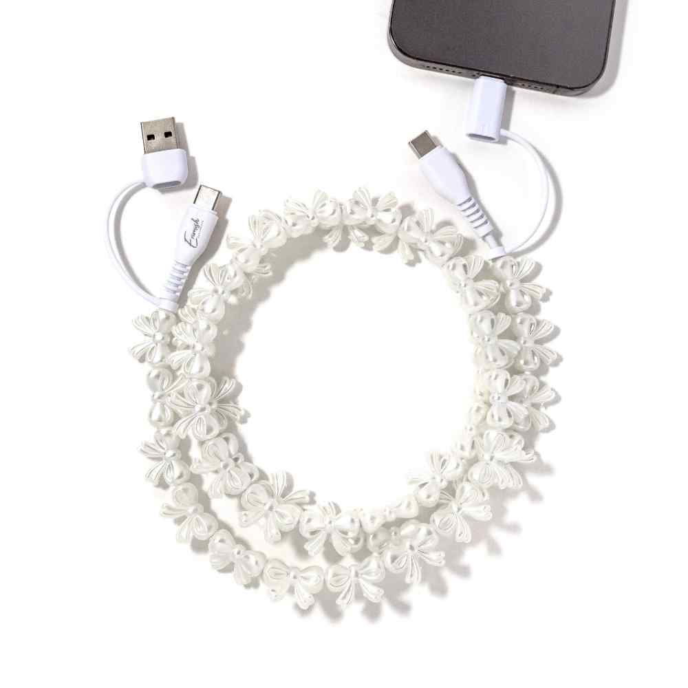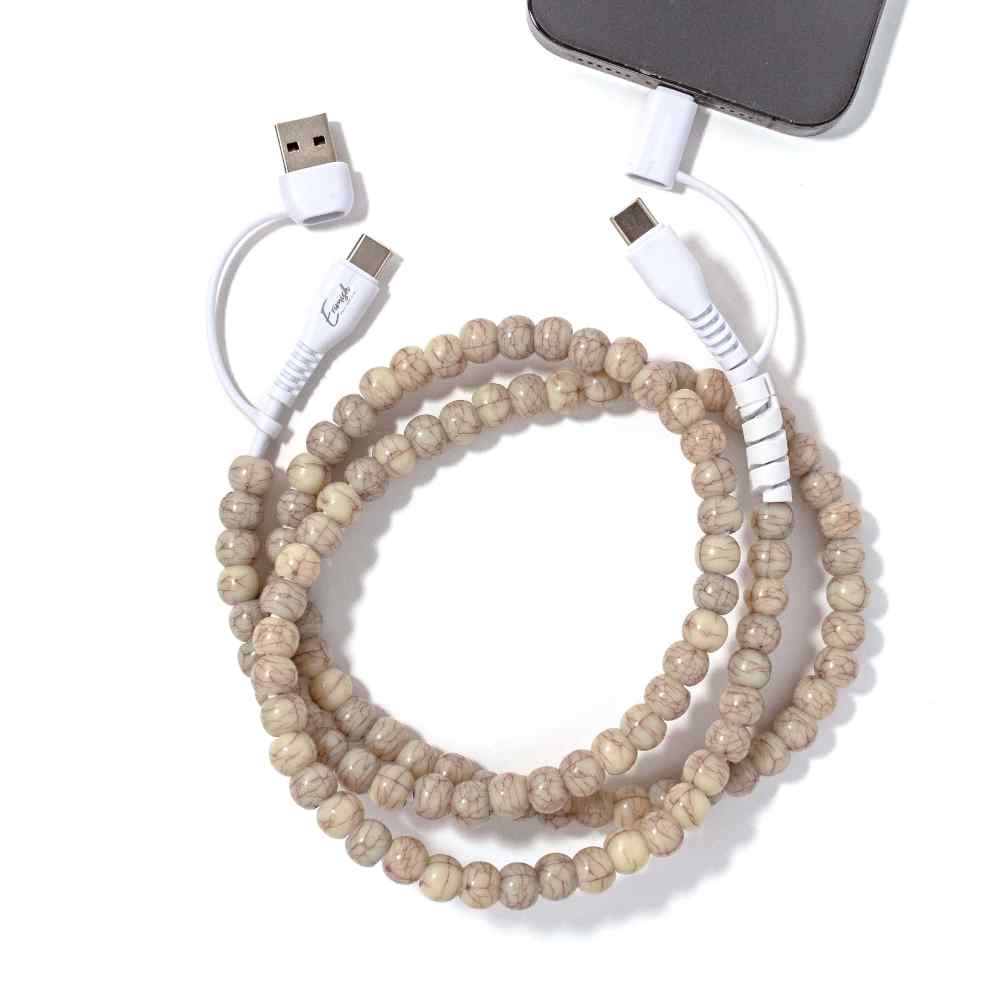 Charge your phone in style with a beaded charging cable. This 2-in-1 USB cable for Type A, Type C, and Lightning devices is not just pretty—it’s powerful! It features 60W fast charging and quick data transfer. Available in two lengths for versatility.