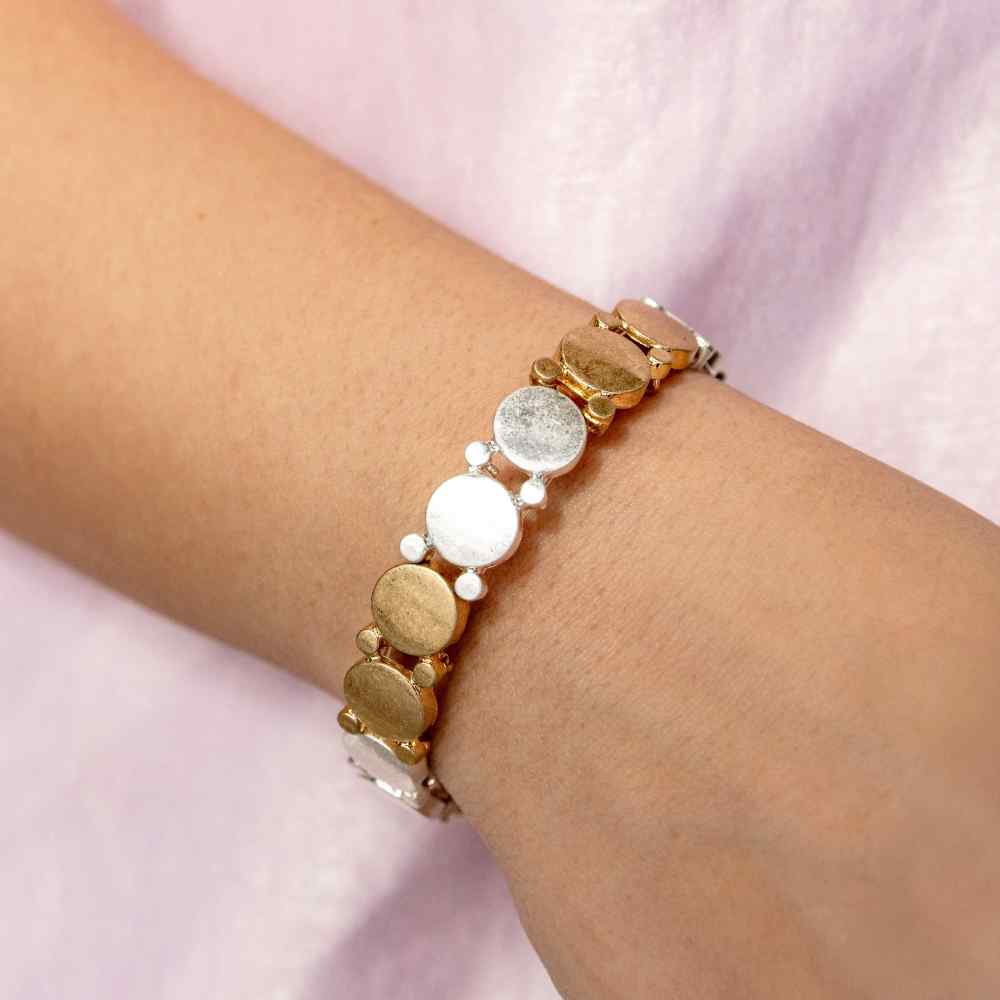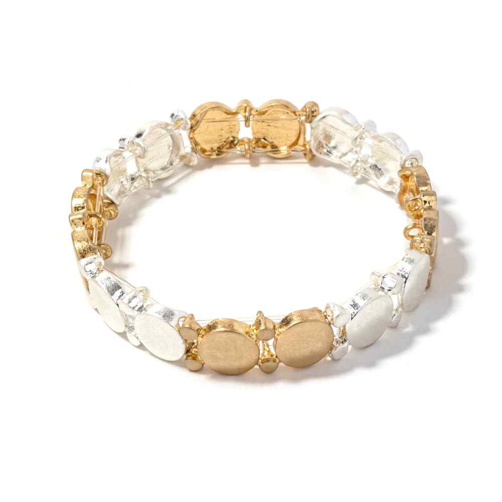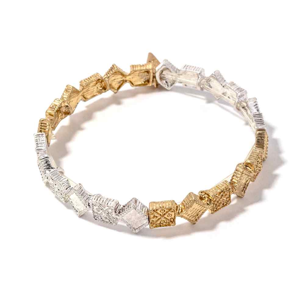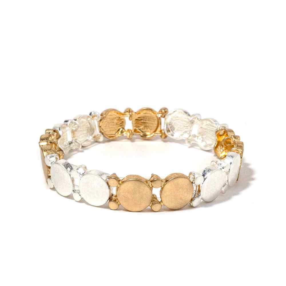 Make a statement with this eye-catching stretch cuff that blends mixed metals into one bold, wearable design. The comfortable stretch fit means it slides on effortlessly and stays put all day, while the unique metallic combination catches the light from every angle.