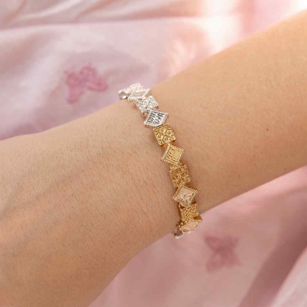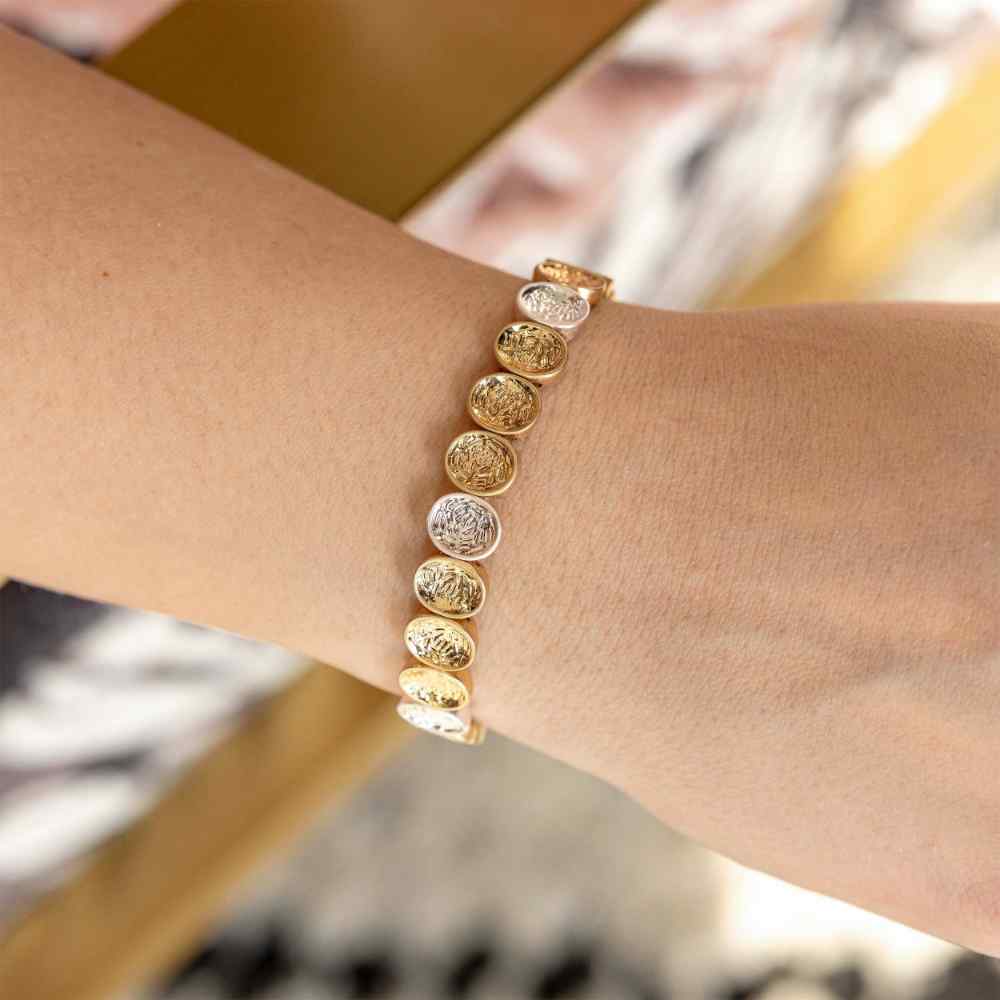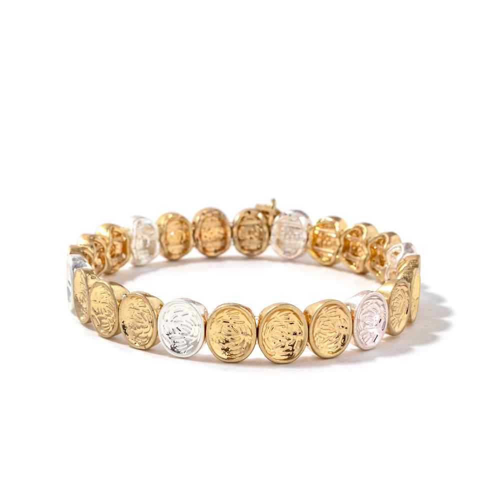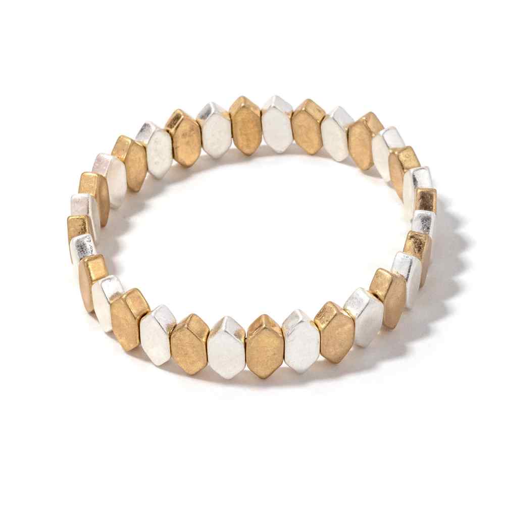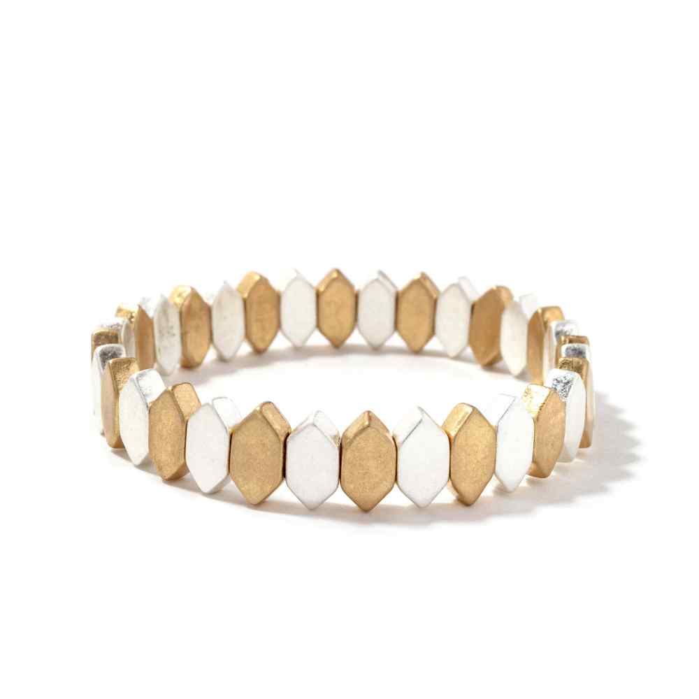 Make a statement with this eye-catching stretch cuff that blends mixed metals into one bold, wearable design. The comfortable stretch fit means it slides on effortlessly and stays put all day, while the unique metallic combination catches the light from every angle.