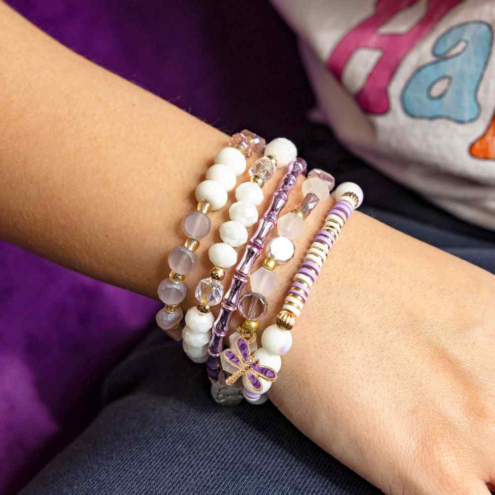 • Lilac: Dreamy, delicate, and totally enchanting—this lilac bracelet stack is your ticket to effortless charm. Soft purple tones layer beautifully together, creating a whimsical look that feels both fun and put-together
