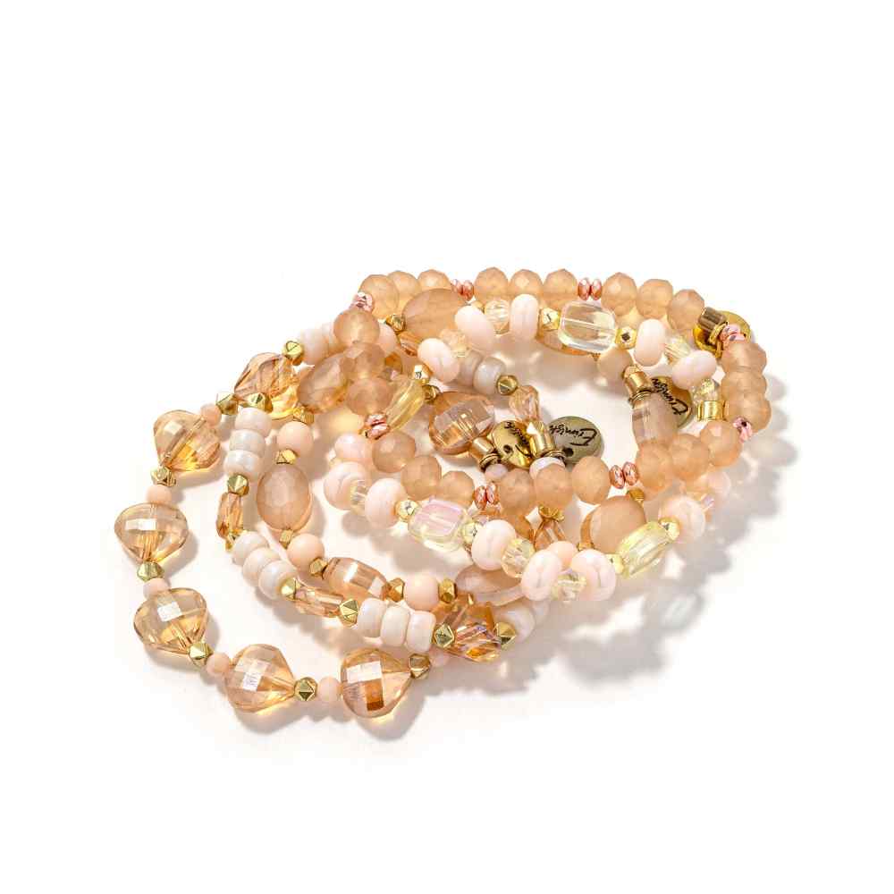 • Lotus: Effortlessly elevate your wrist with this dreamy bracelet stack, where soft neutrals meet warm peach undertones for a look that's both sophisticated and fun