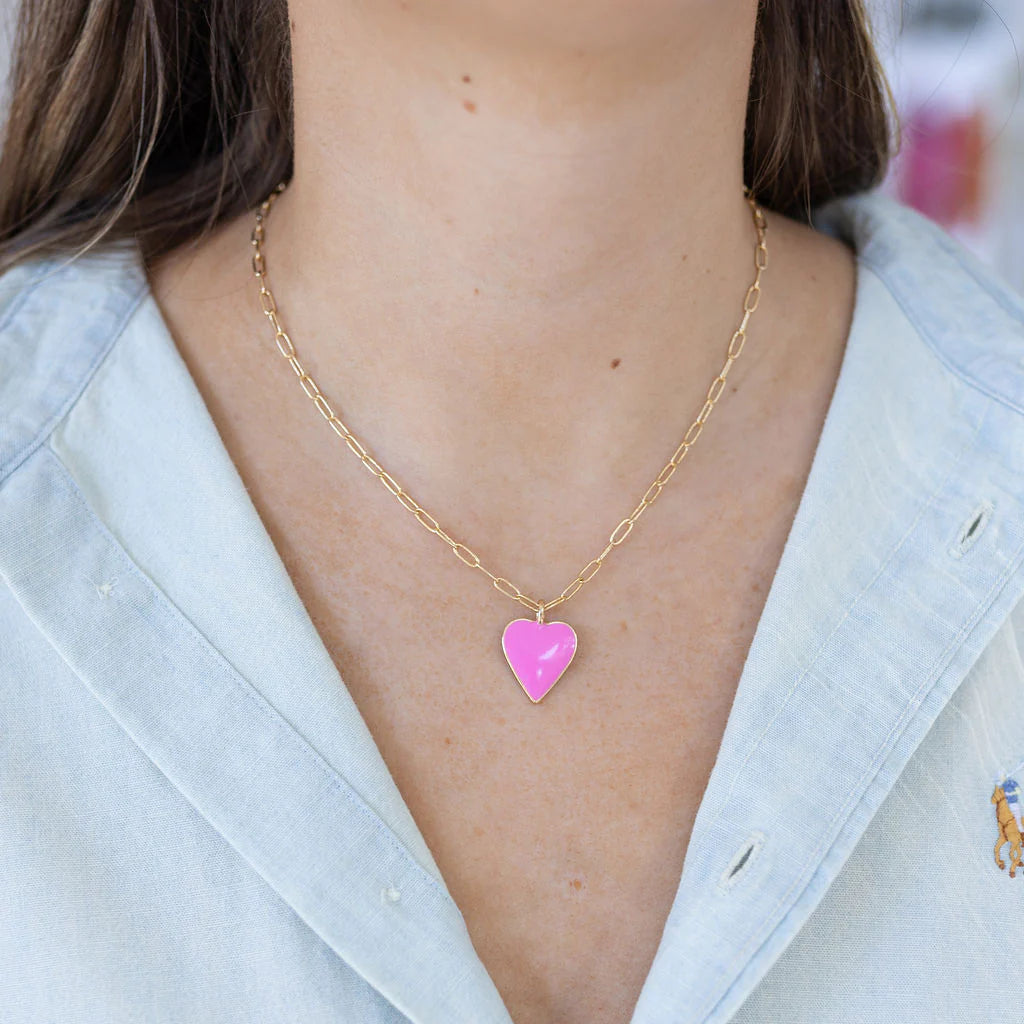 This heart necklace creates an unexpected pop of color, complementing the gold rectangle chain! Wear it solo for a chic accessory or as a layering piece.