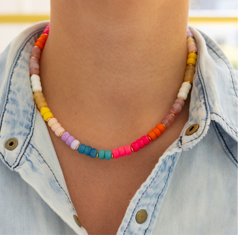 The Colorful Staple Resin Necklace is sure to make you happy with its colors, materials, and effortless, joyful feel. This design is bright and carefree—offering that vivid burst of color you crave each day.