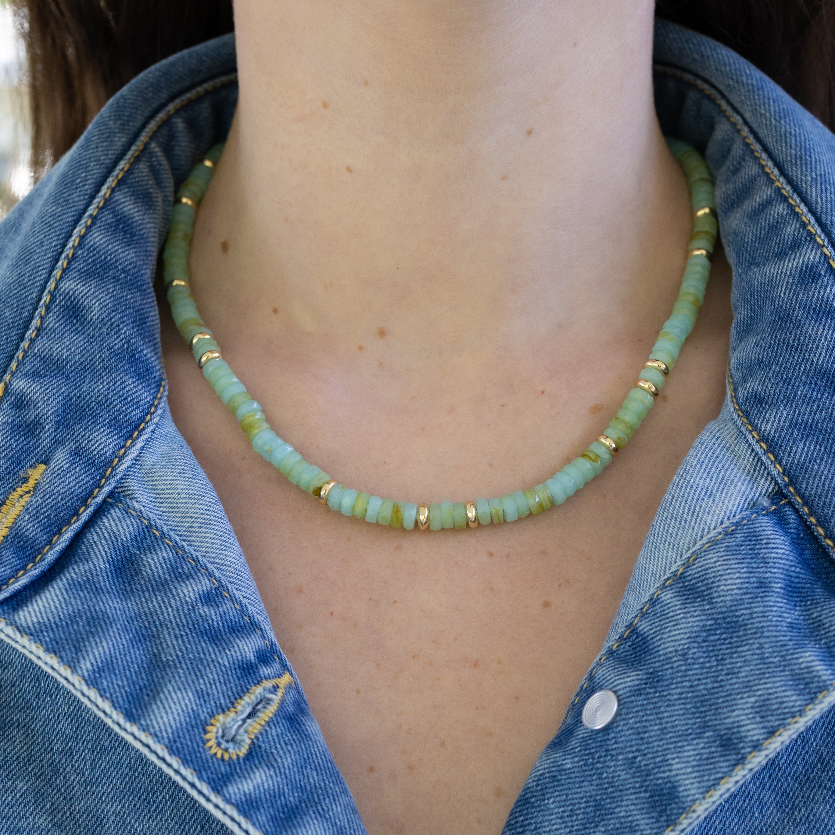 Sparkling in the sunshine, this Double Mint Necklace brings together faceted resin beads in shades of green with hints of mint and lime. Wear it solo for a chic accessory or as a layering piece.