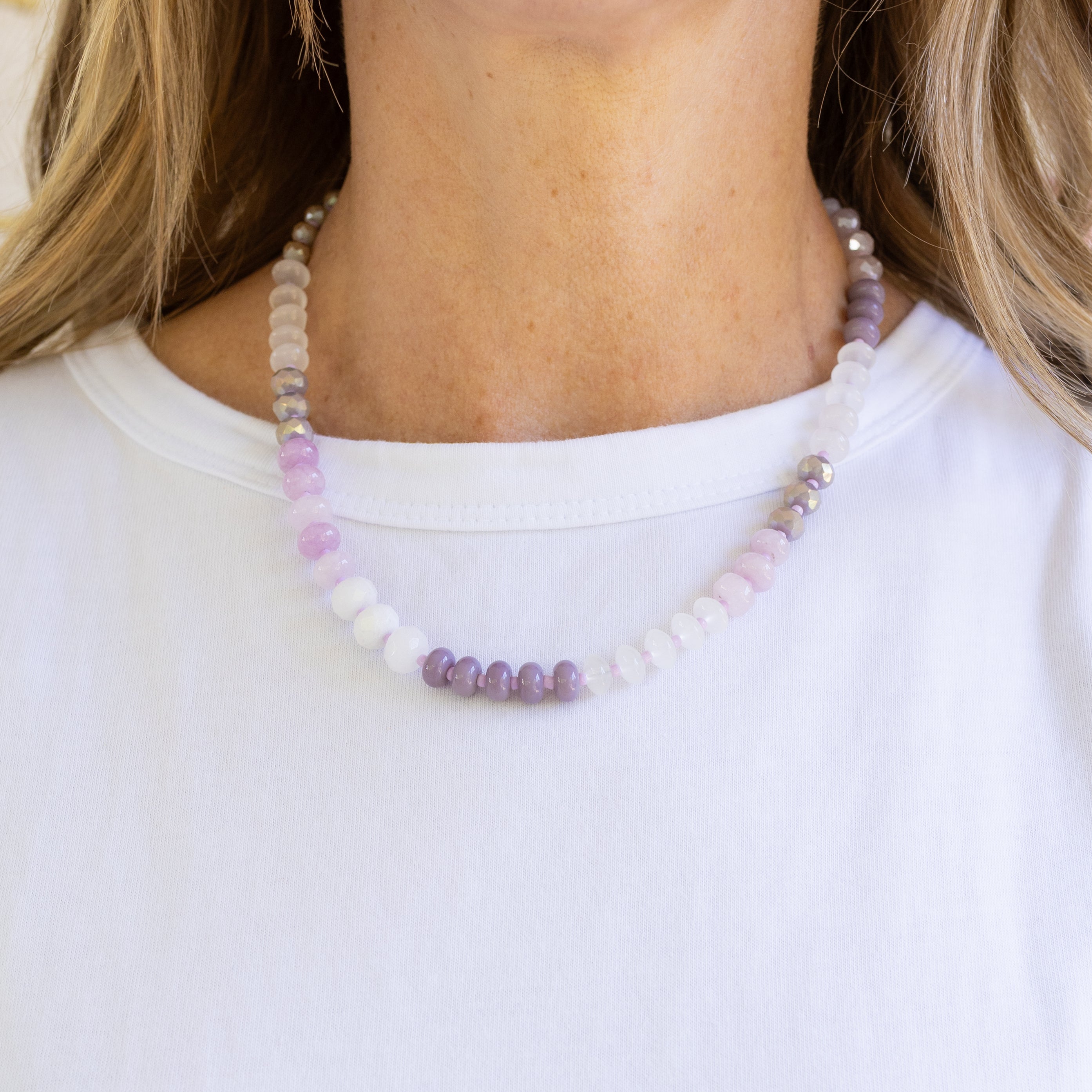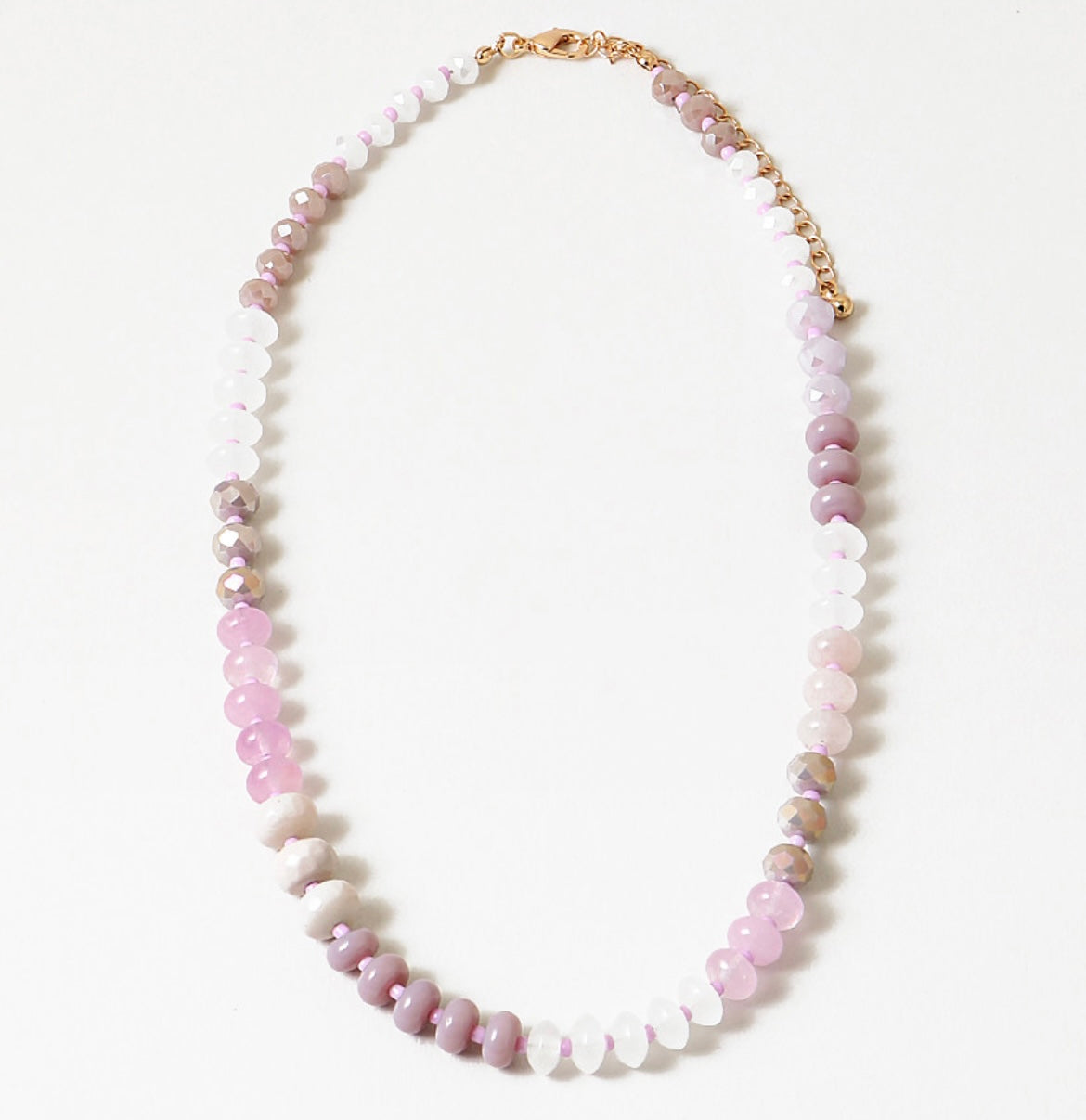 These colors are reminiscent of paintings by the artist Claude Monet with beautiful shades of lilac and orchid. The resin stones are lightweight, making this necklace a beautiful piece to layer with other jewelry from your collection.
