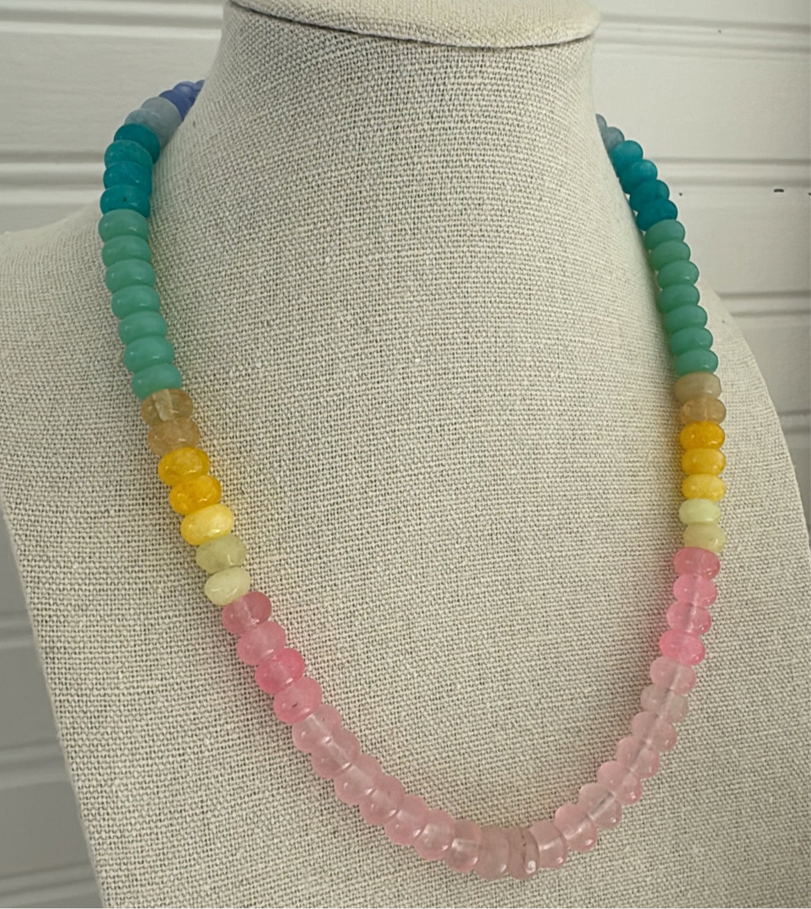 This gemstone necklace is reminiscent of the beach, summer, sunshine, good vibes, and relaxation! Wear it solo for a chic accessory or as a layering piece.