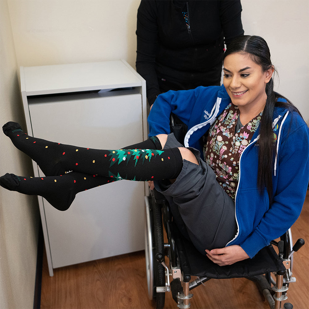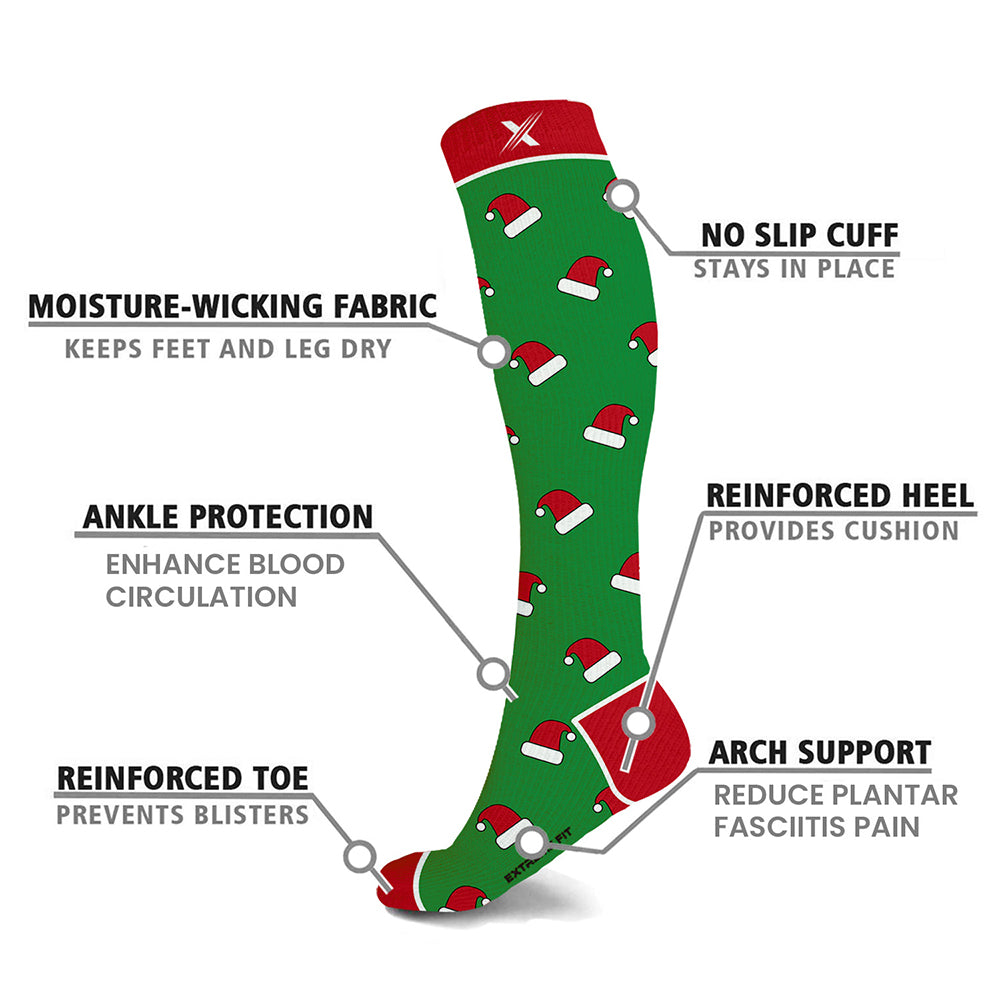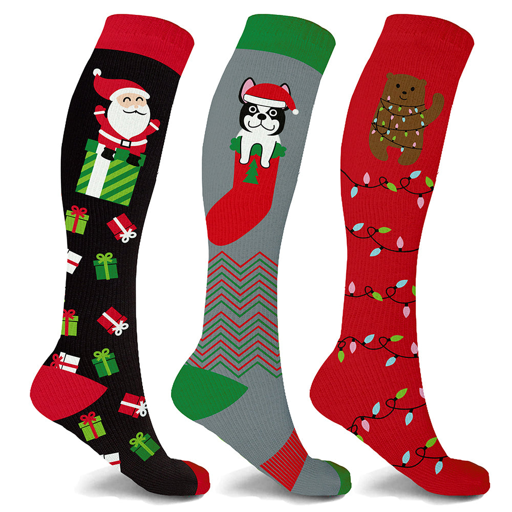 Includes three (3) pairs of Holiday Fun Knee-High Compression Socks in size and style of your choice
