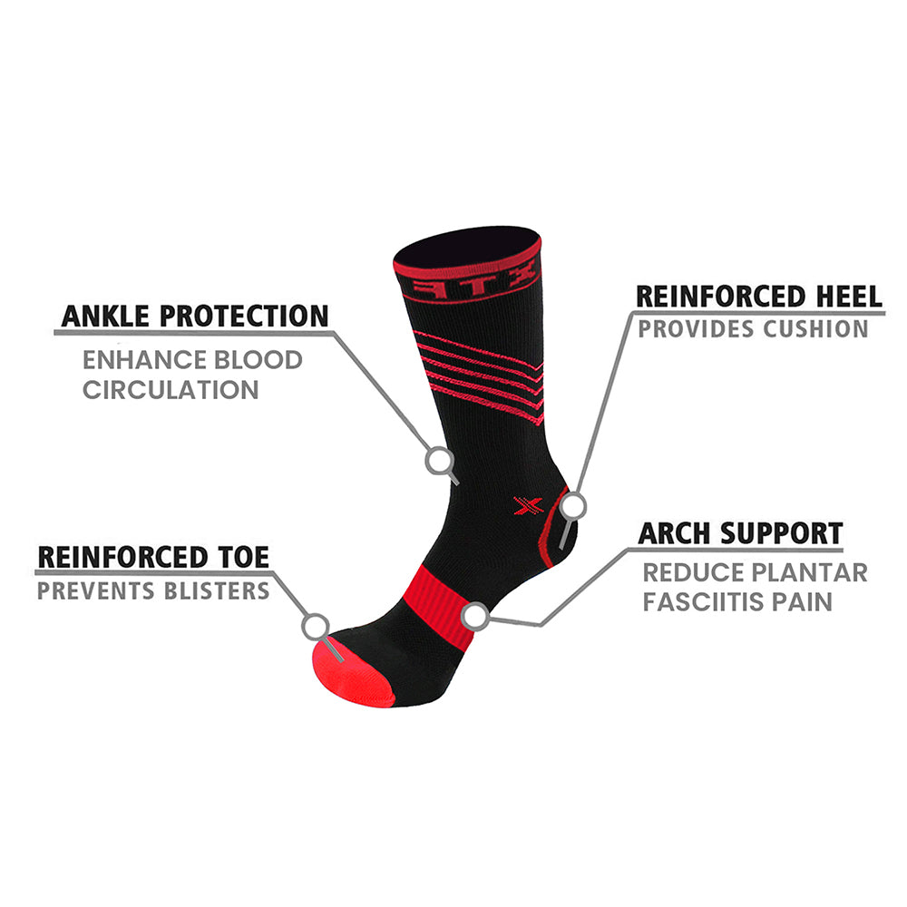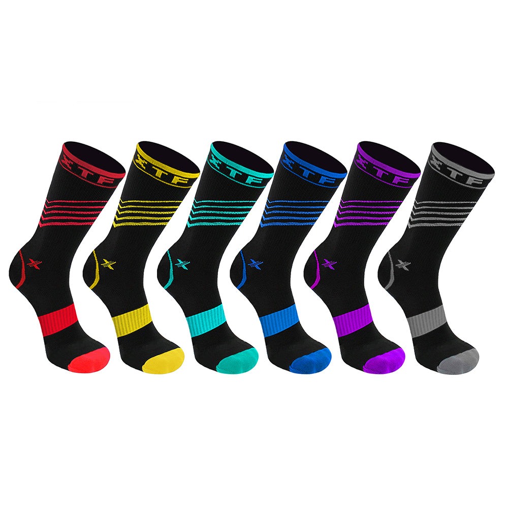 Includes six (6) pairs of Ultra V-Striped Crew Compression Socks in size of your choice