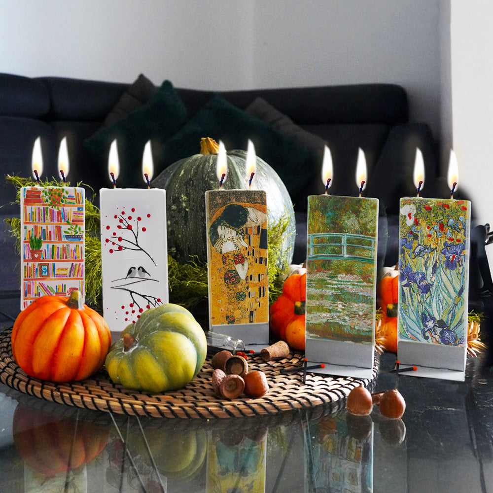 • Includes five (5) Handcrafted Flat Candles in design of your choice