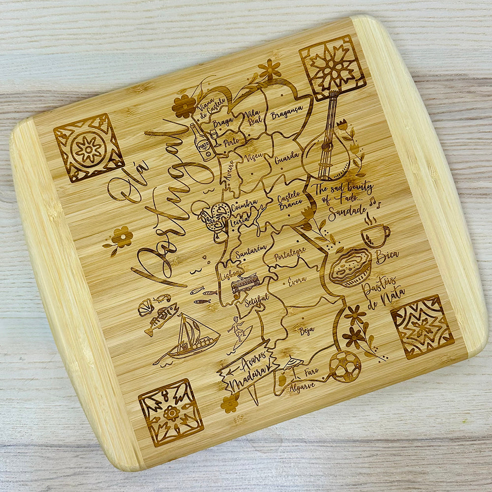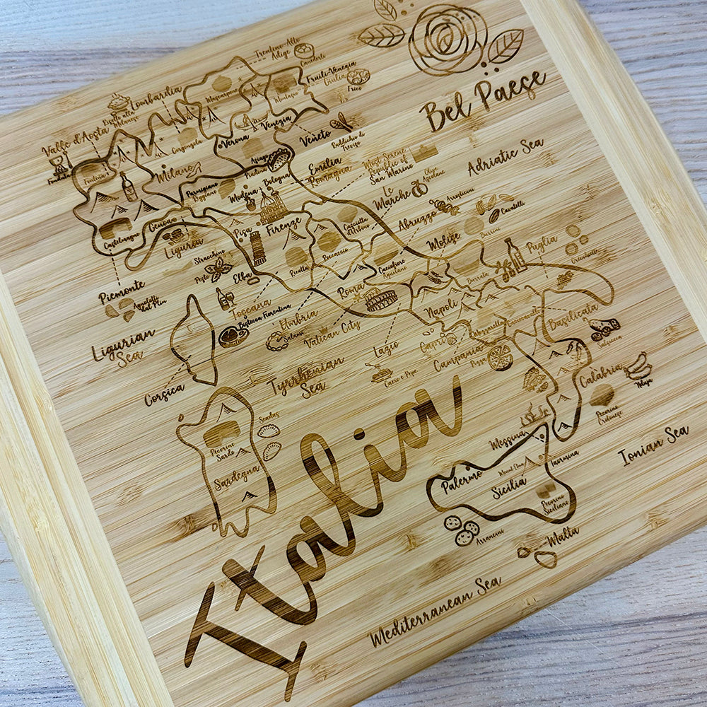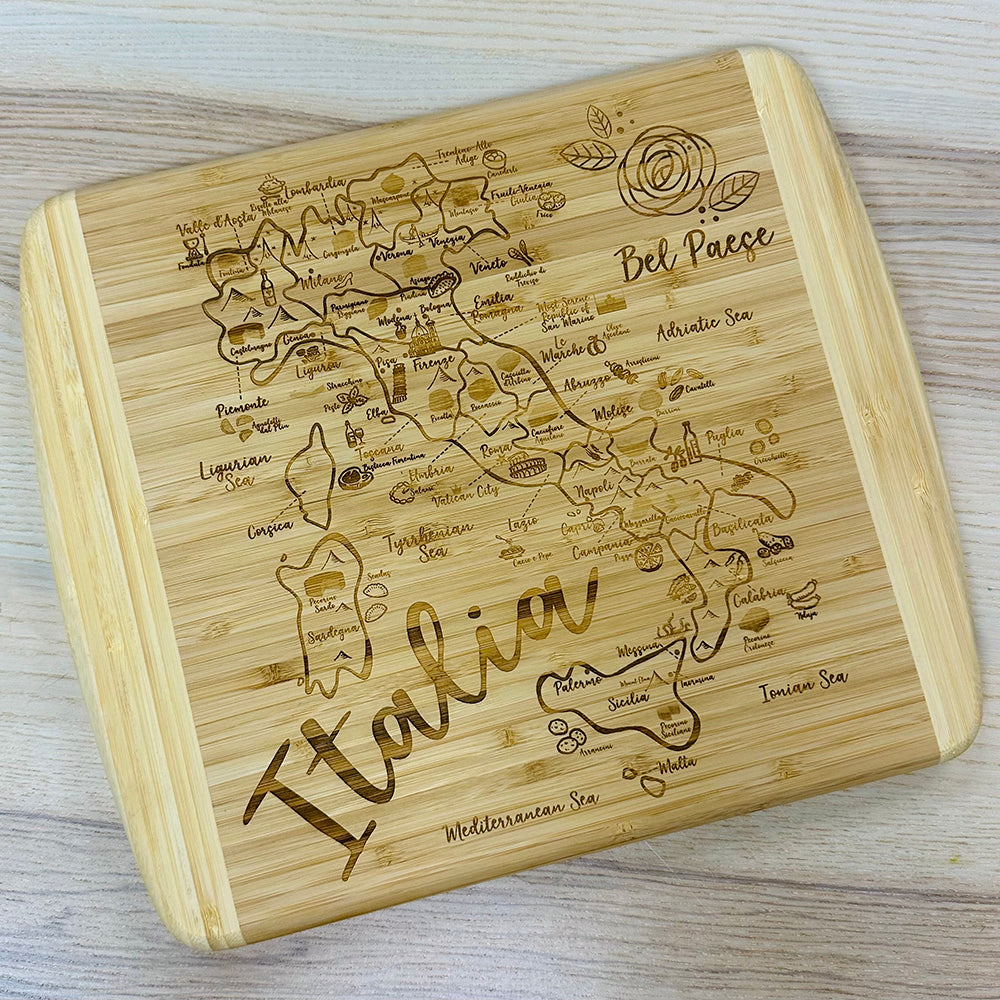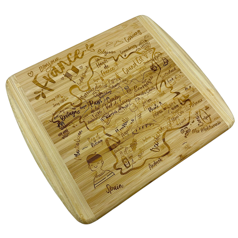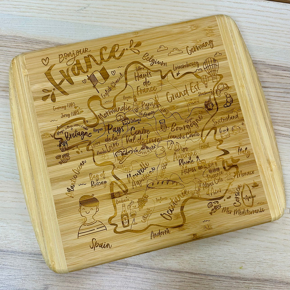 The Illustrated Country Map Charcuterie & Cutting Board can be used as a cutting board or lovely cheese platter, or proudly displayed as a centerpiece for your home. It also makes a great gift for any occasion.