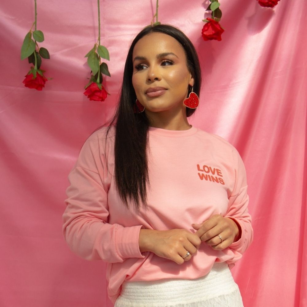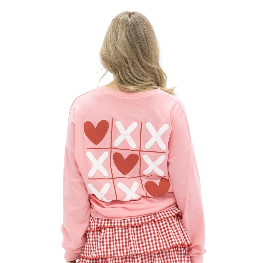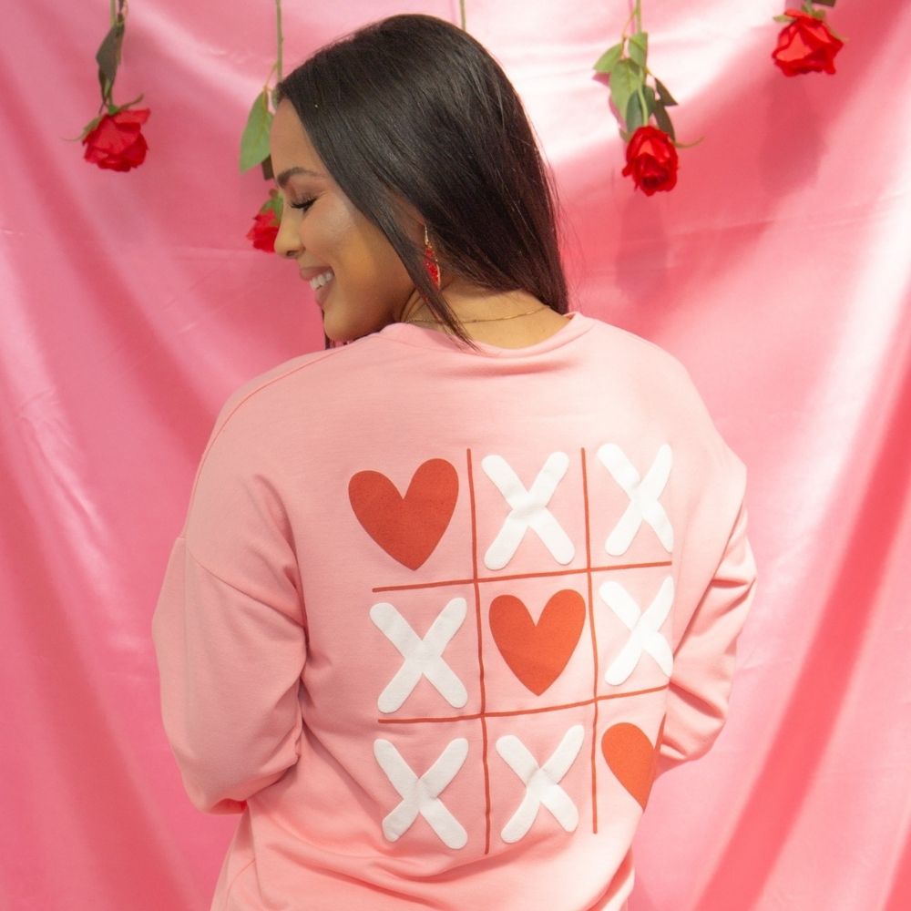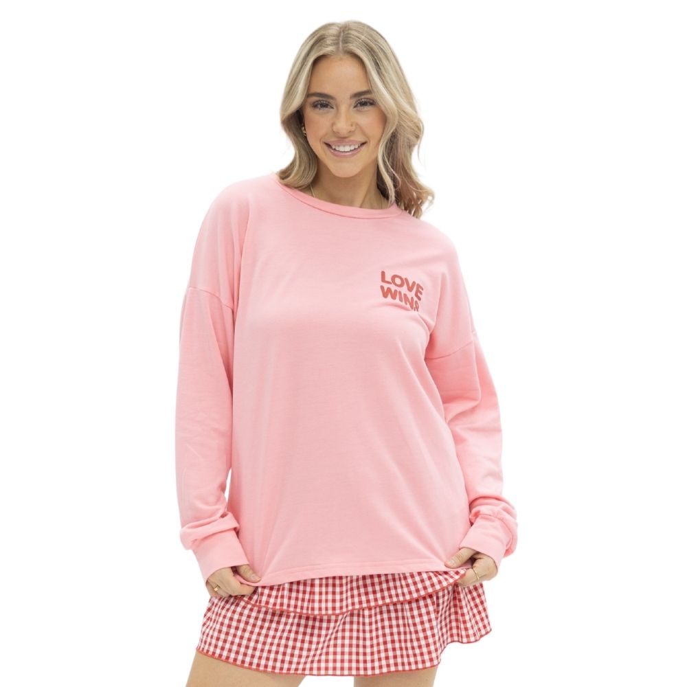 This soft pink long sleeve top features a relaxed, easy fit with a subtle “Love Wins” chest graphic and large back XOXO heart print. Designed for everyday wear, it’s effortlessly comfortable while still making a sweet statement that stands out on its own or layered.