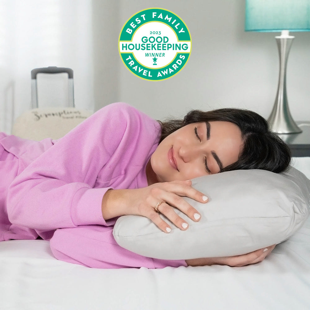 Larger than a typical travel pillow, the Scrumptious Travel Pillow was specifically engineered to provide you with the same support and comfort you get from a full-size pillow, in a package that’s easy and convenient to take with you anywhere.