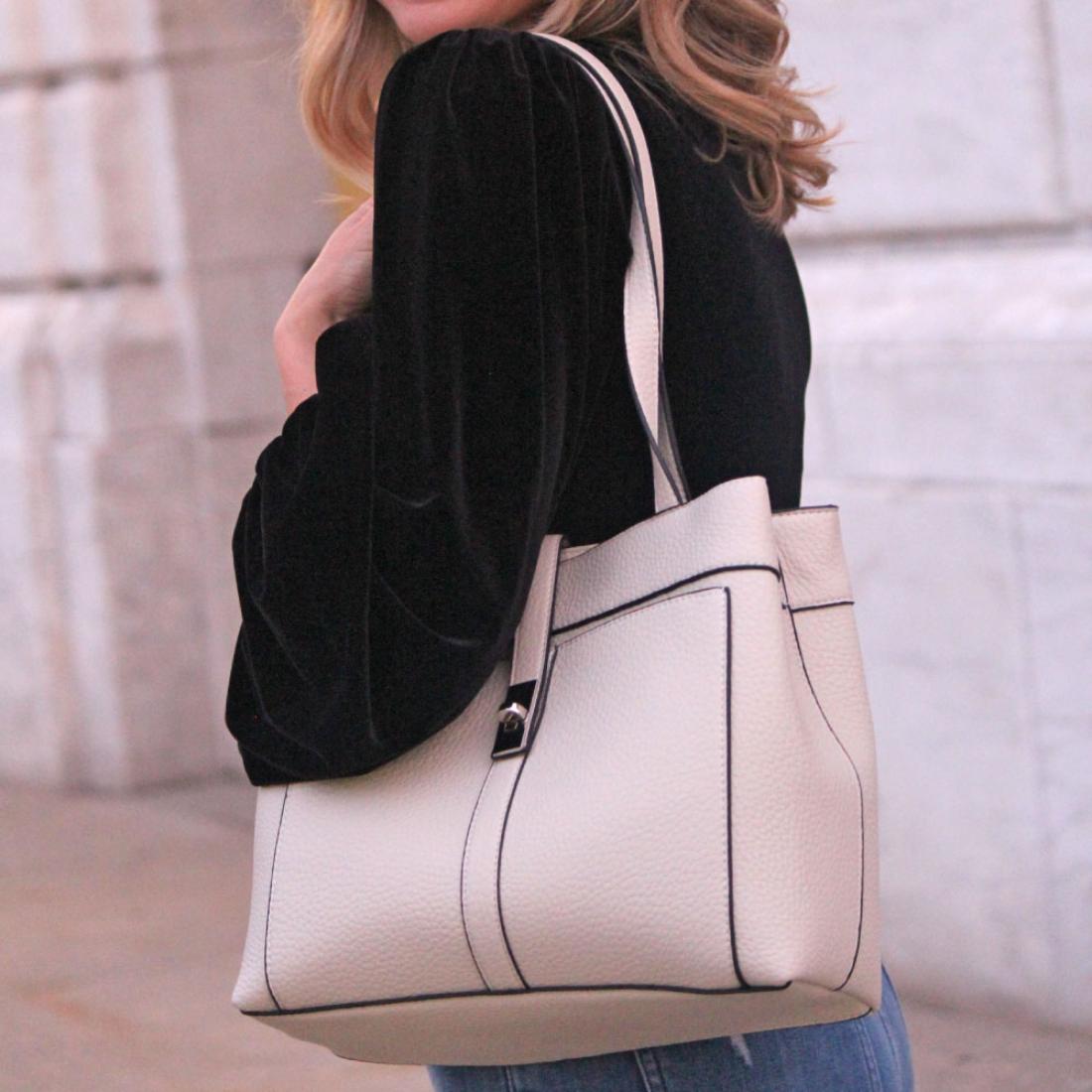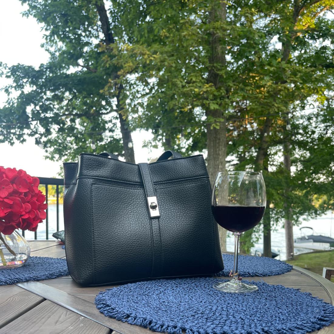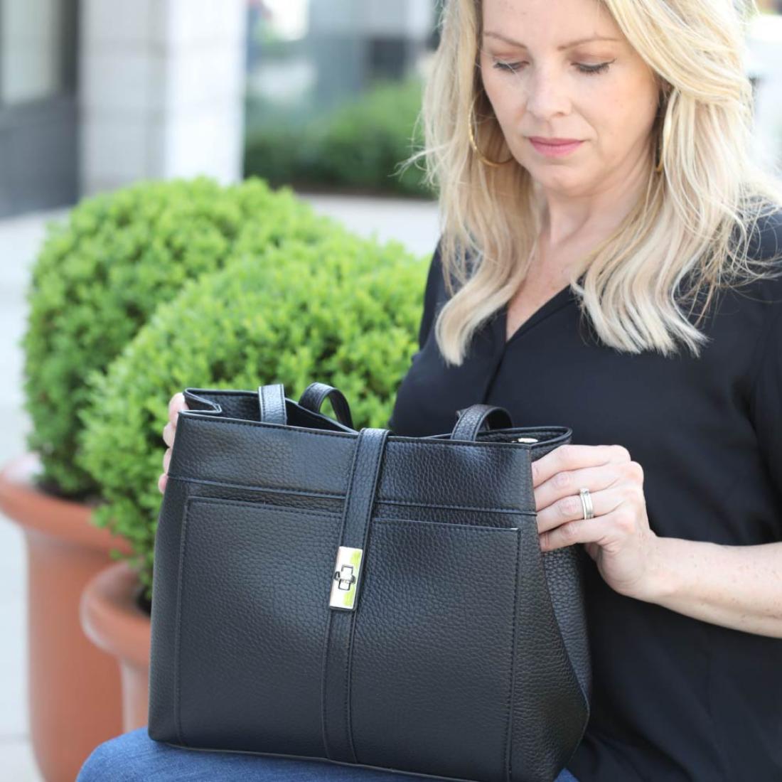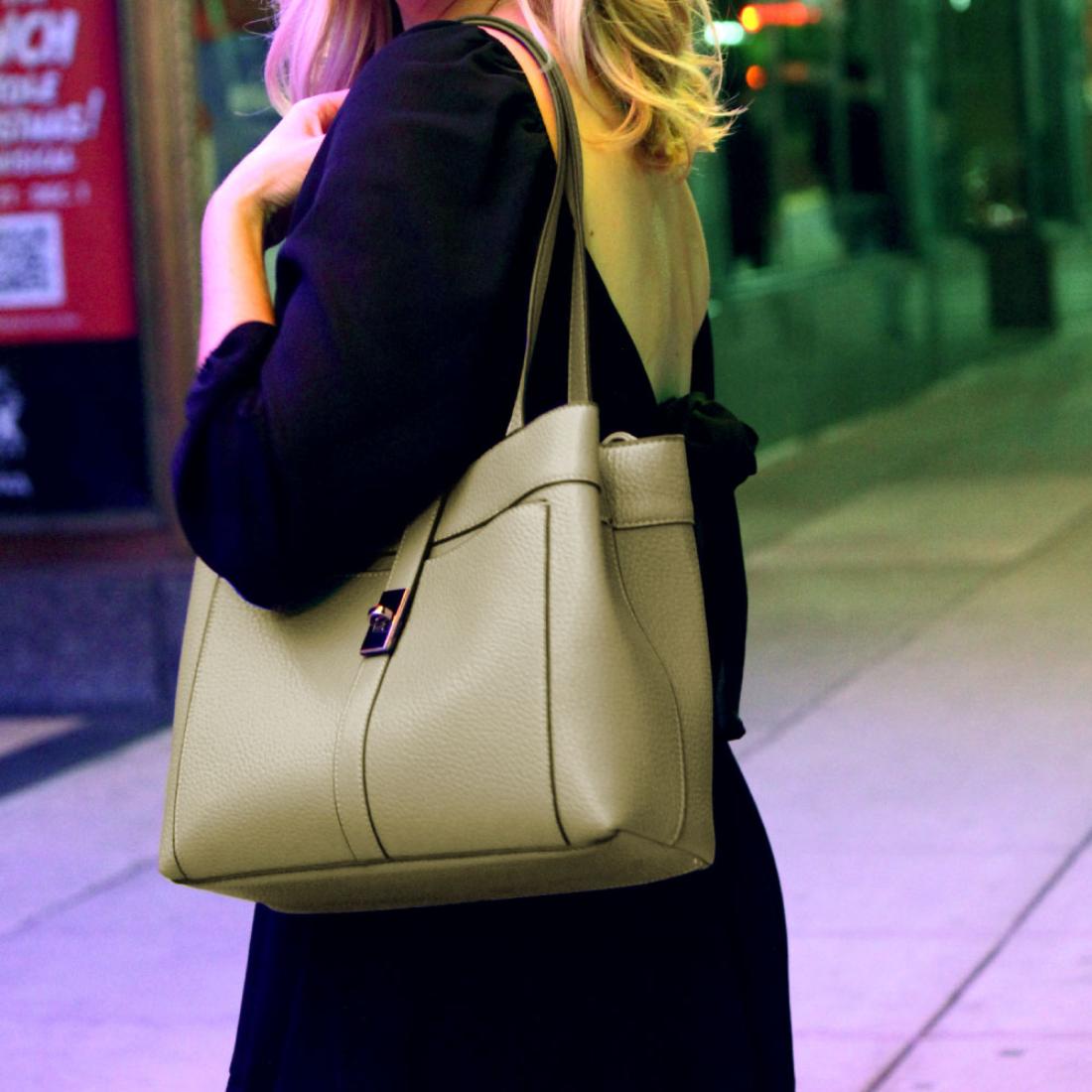 This classically designed tote comes with a crossbody strap for when you need to go hands-free. With a front open pocket for easy in and out, and decorative clasp for an elegant look, this bag is great for any occasion—from everyday wear to travel. Its three-tiered organization structure provides ample storage space.