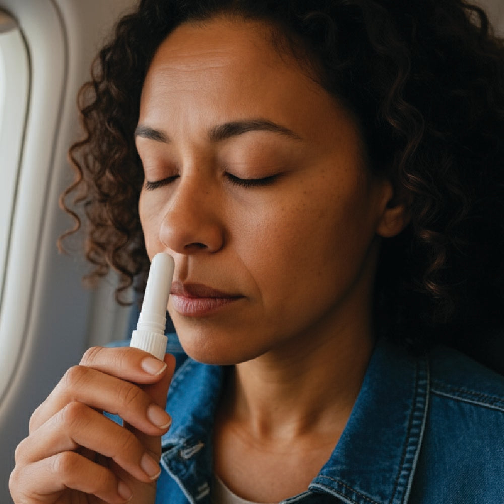 A refreshing aromatherapy blend infused with pure peppermint essential oil, designed to promote comfort and balance during travel. The cooling, minty aroma helps ease sensations of motion discomfort and travel nausea while providing a revitalizing boost for the senses.