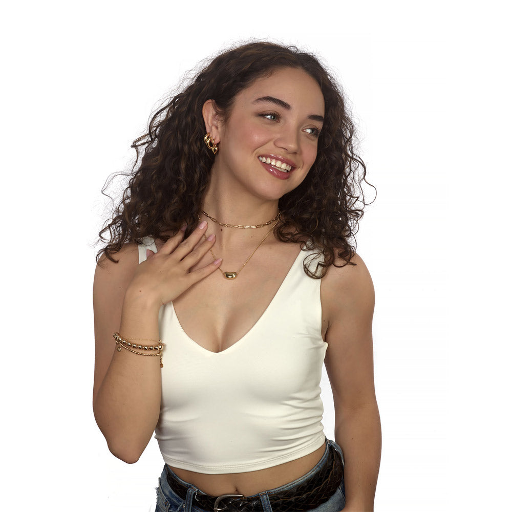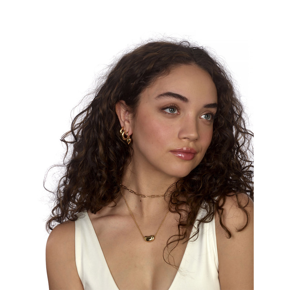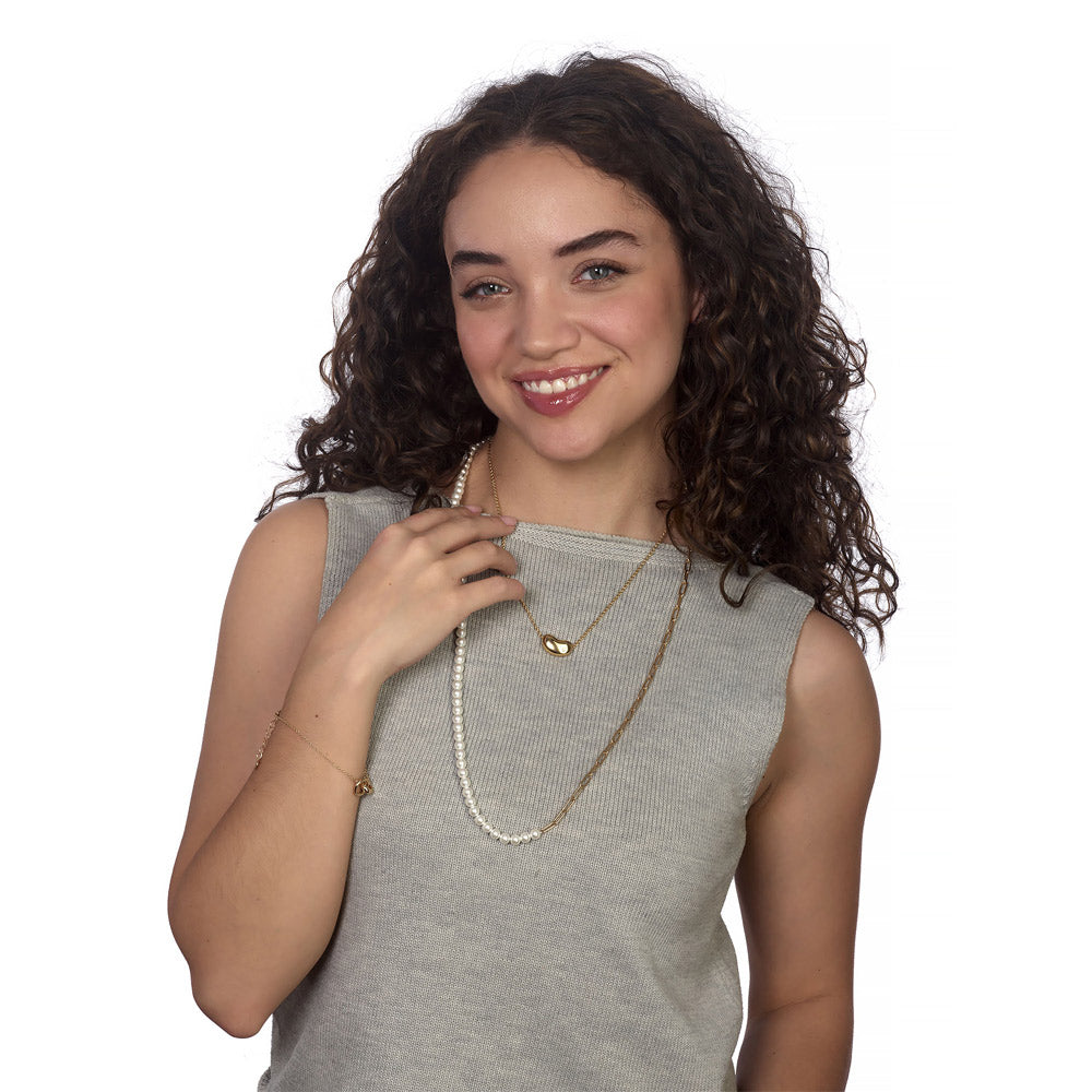 The Moonbean Necklace is a romantic blend of elegance and charm, featuring an oblong bean with an off-center stone on a delicate rolo chain—a modern, yet timeless piece.