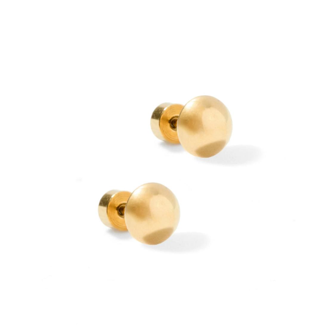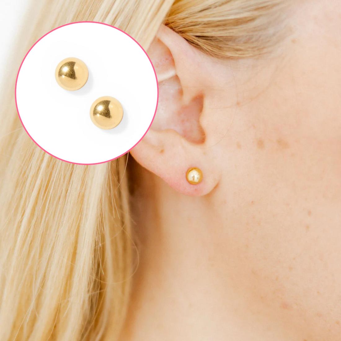 Bold in simplicity, the Vera Earrings feature a gold ball-shaped design that adds a timeless accent to any look. Ideally sized for everyday wear, these waterproof, hypoallergenic studs are crafted from surgical-grade stainless steel and designed with a secure screw-back post. Great for both adults and teens, they offer long-lasting comfort with a sleek finish.