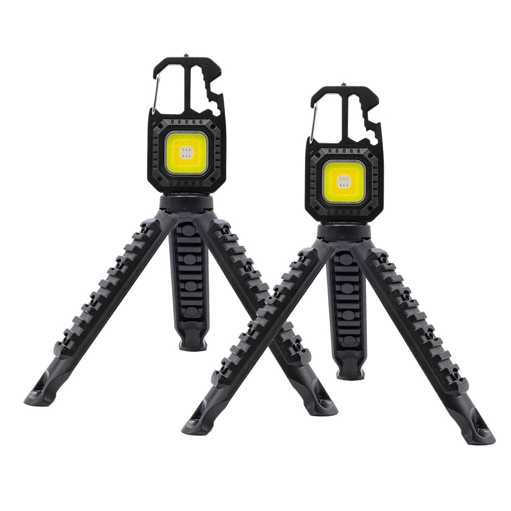 The Rechargeable Tripod Work Light with Screwdriver Bits is the ideal companion for your workshop or tasks at hand. This powerful multi-tool work light is packed with features and seven light modes to make your life easier and more efficient. Whether you're working in your garage, camping, or hiking, this light is a great tool to have on hand.