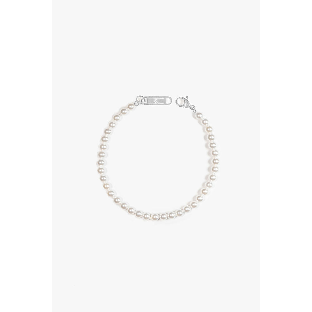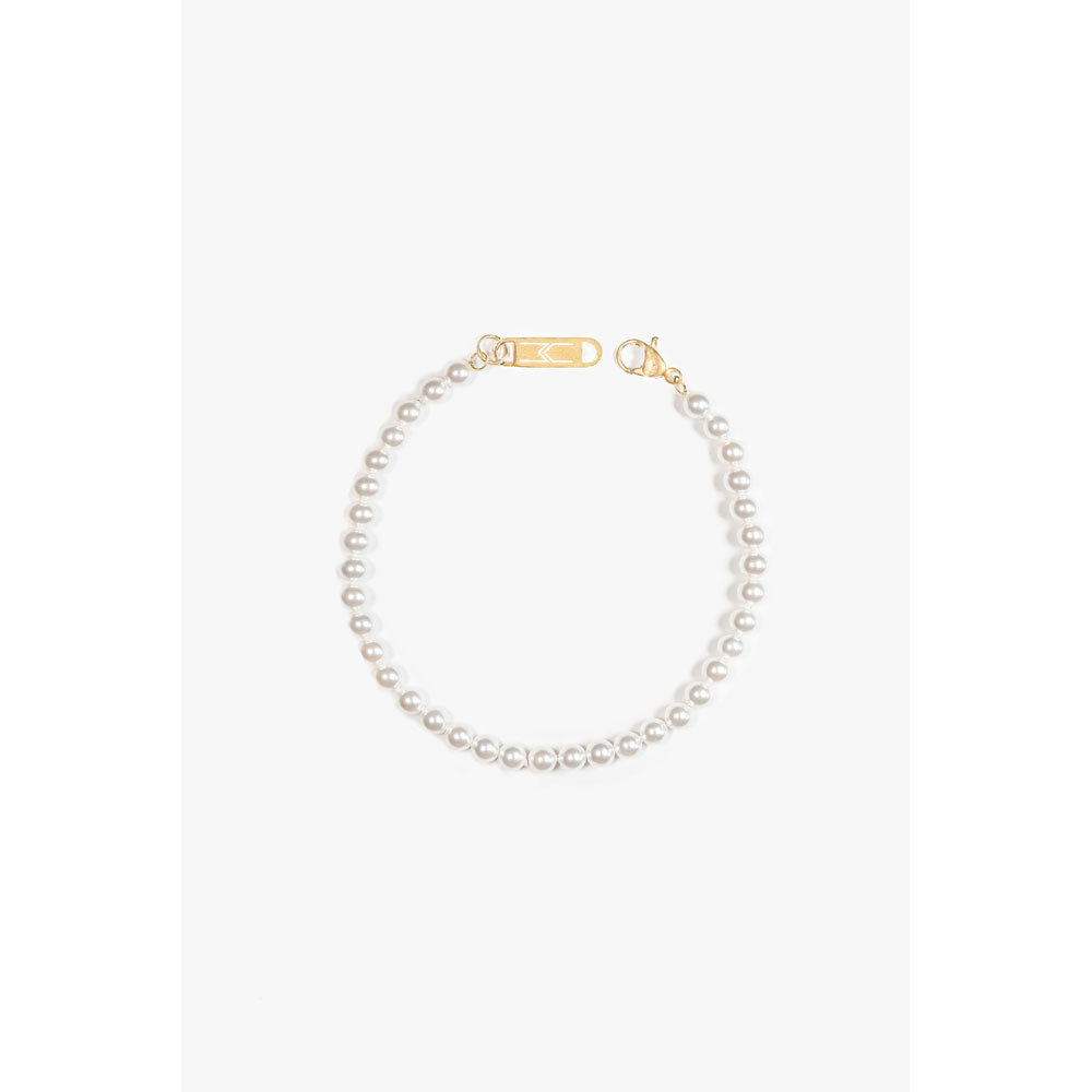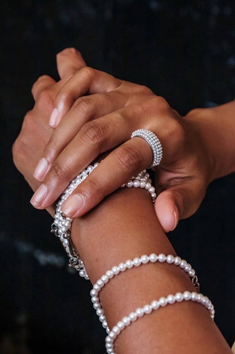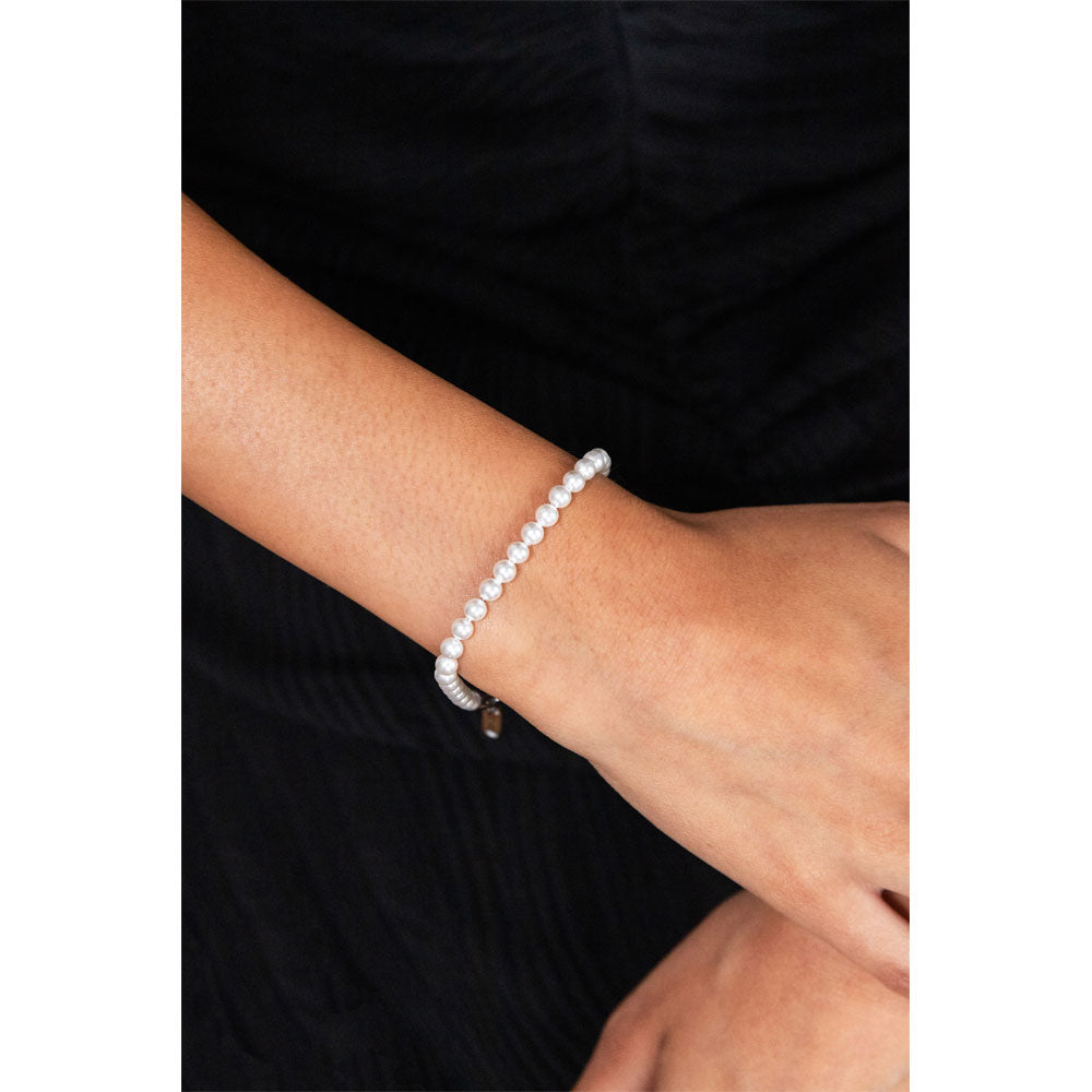 Traditional ivory glass pearls strung on delicate chain links for promised durability and longevity. Ideal to wear solo or layer with other chain bracelets for a sophisticated and classic look.
