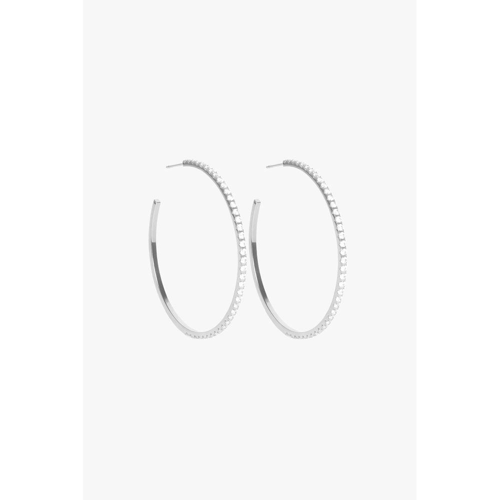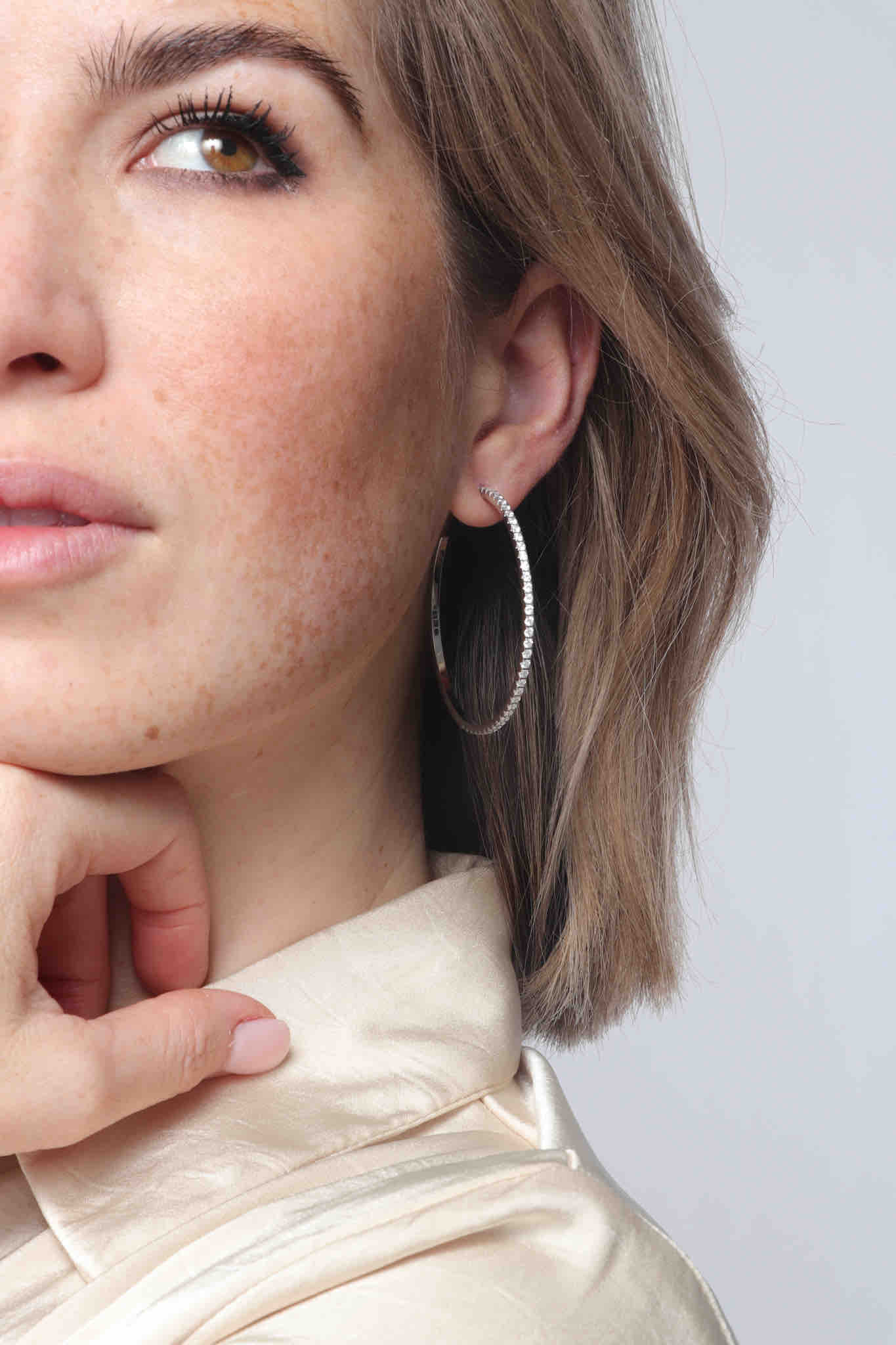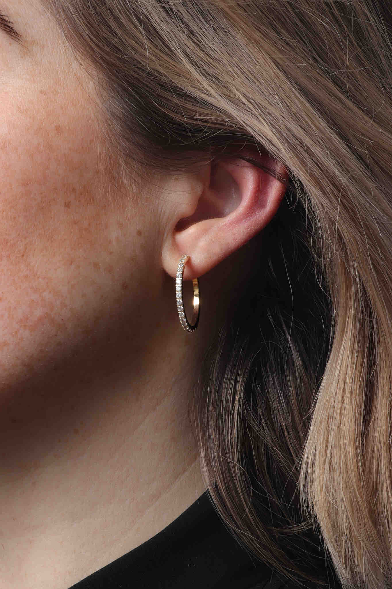 Elevate your style with these thin geometric stud hoops adorned with simulated diamond details. Their sleek design and sparkling accents make them a stunning accessory that adds a touch of elegance to any look.