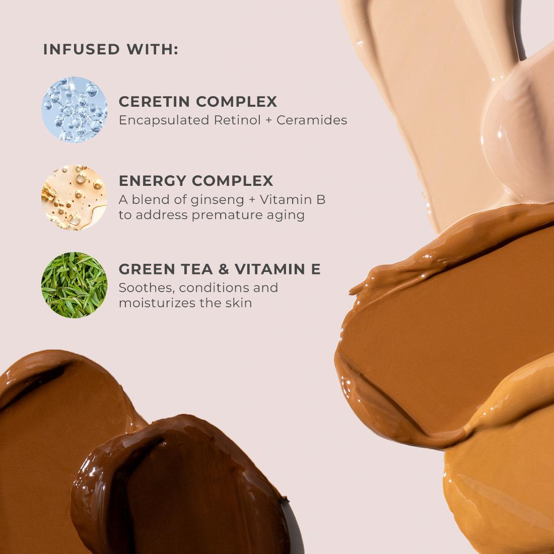 Aqua, Cyclopentasiloxane, Methyl Methacrylate Crosspolymer, Butylene Glycol, Phenyl Trimethicone, Ethylhexyl Palmitate, Caprylyl Methicone, Cetyl PEG/PPG-10/1 Dimethicone, Cyclohexasiloxane, Diphenylsiloxy Phenyl Trimethicone, PEG-10 Dimethicone, Sorbitan Isostearate, Trimethylsiloxysilicate, Sodium Chloride, Dimethicone/Vinyl Dimethicone Crosspolymer, Dimethicone, Ceramide AP, Retinol, Lactic Acid, Butyrospermum Parkii (Shea) Butter Extract, Sodium Starch Octenylsuccinate, Camellia Sinensis (Green Tea) Leaf Extract, Panax Ginseng Root Extract, Panthenol, Vaccinium Vitis-Idaea (Lingonberry) Fruit Extract, Disteardimonium Hectorite, Triethoxycaprylylsilane, Aluminum Hydroxide, Coffea Arabica (Coffee) Seed Extract, Oryza Sativa (Rice) Bran Extract, Lauroyl Lysine, Helianthus Annuus (Sunflower) Seed Oil, Olea Europaea (Olive) Fruit Oil, Tuber Melanosporum Extract, Vitis Vinifera (Grape) Fruit Extract, Calcium Gluconate, Phenoxyethanol, Glycerin, Triethyl Citrate, Ethylhexylglycerin, Disodium EDTA, Citric Acid, Xanthan Gum, Gluconolactone, Sodium Benzoate, 1, 2-Hexanediol, Biosaccharide Gum-4. May Contain [+/-]: Titanium Dioxide (Ci 77891), Iron Oxides (Ci 77491, 77492, 77499)