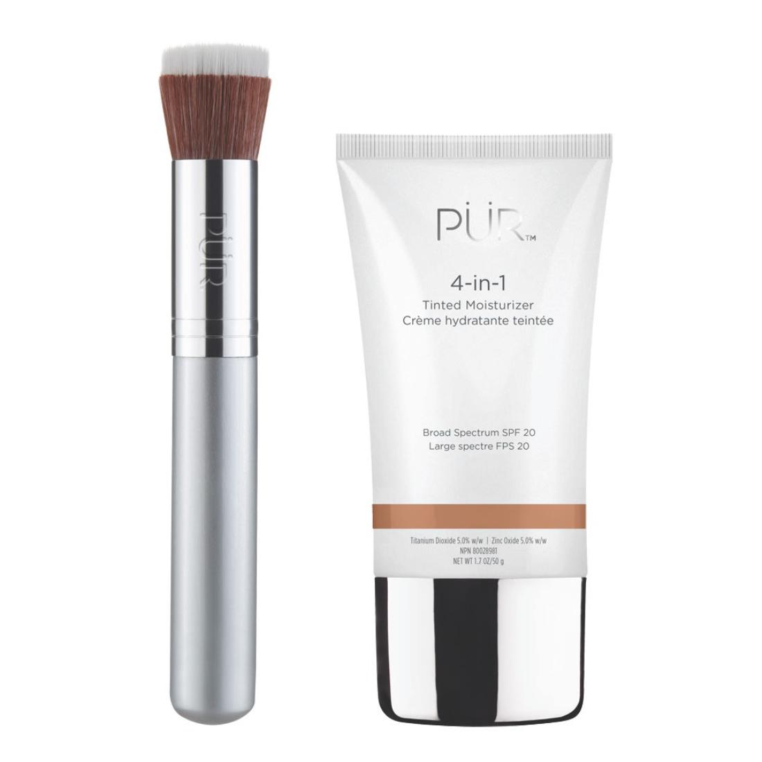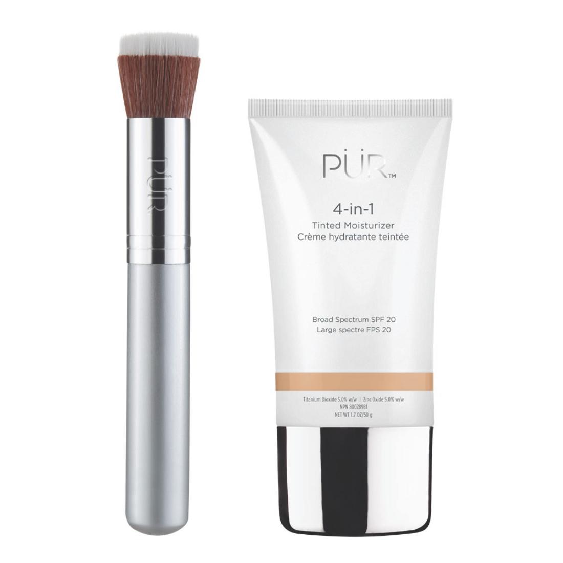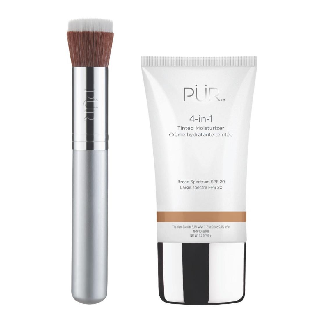 Simplify your routine with the 4-in-1 Tinted Moisturizer, a moisturizer, primer, foundation, and SPF 20 all in one, and the Liquid Chisel Brush, designed to deliver a flawless, airbrushed finish. Together, they provide hydration, sun protection, and effortless application for a radiant, natural-looking complexion.