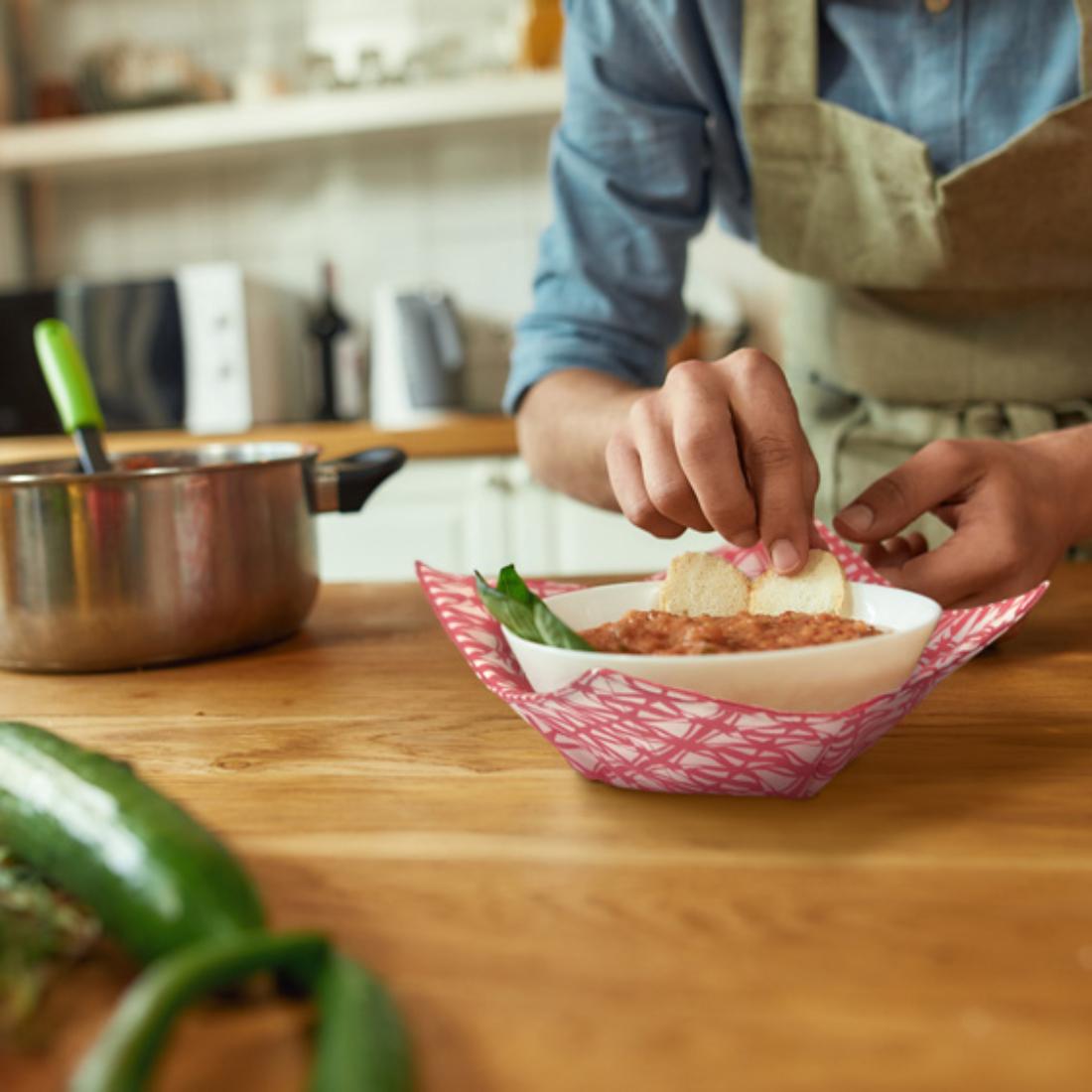 • Can also be used to cradle any hot bowl or dish to protect hands from the heat