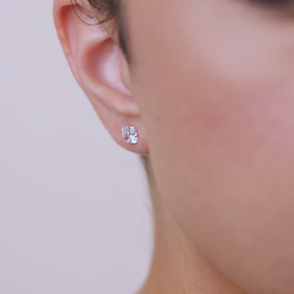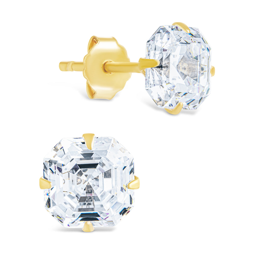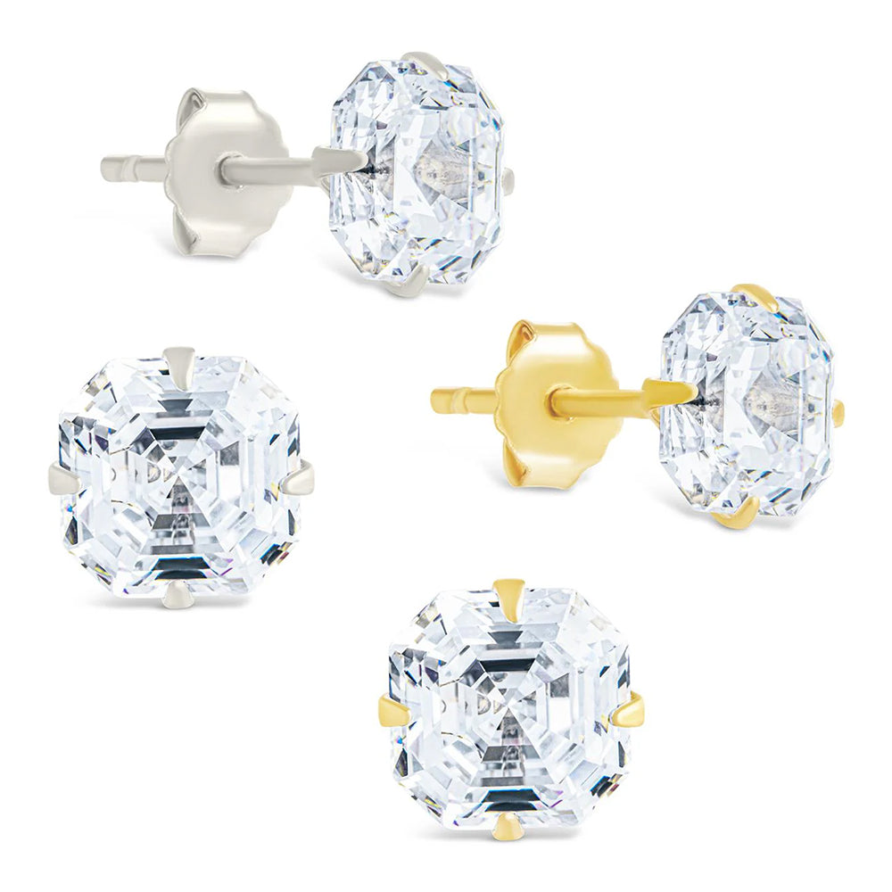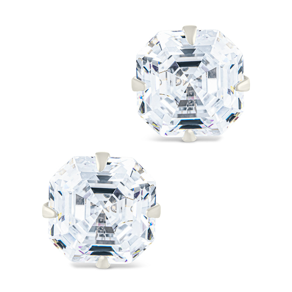 Sterling Silver Asscher Cut Prong Set Stud Earrings