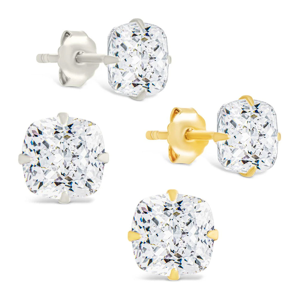 Sterling Silver Cushion Cut Prong Set Stud Earrings