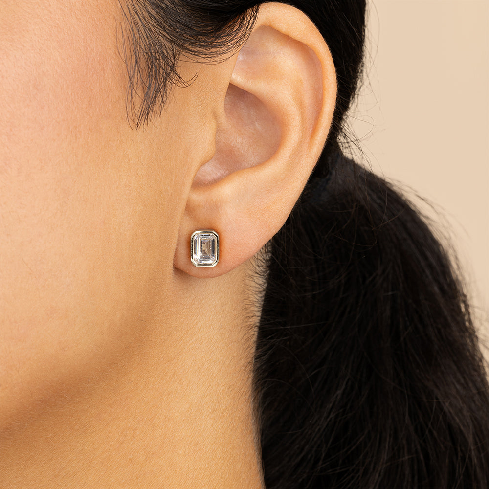 These studs are anything but basic. Featuring Hearts & Arrows, emerald cut stones for incredible brilliance, they catch the light from every angle. Set in sleek, non-tarnishing sterling silver, they’re the ideal mix of classic and modern.