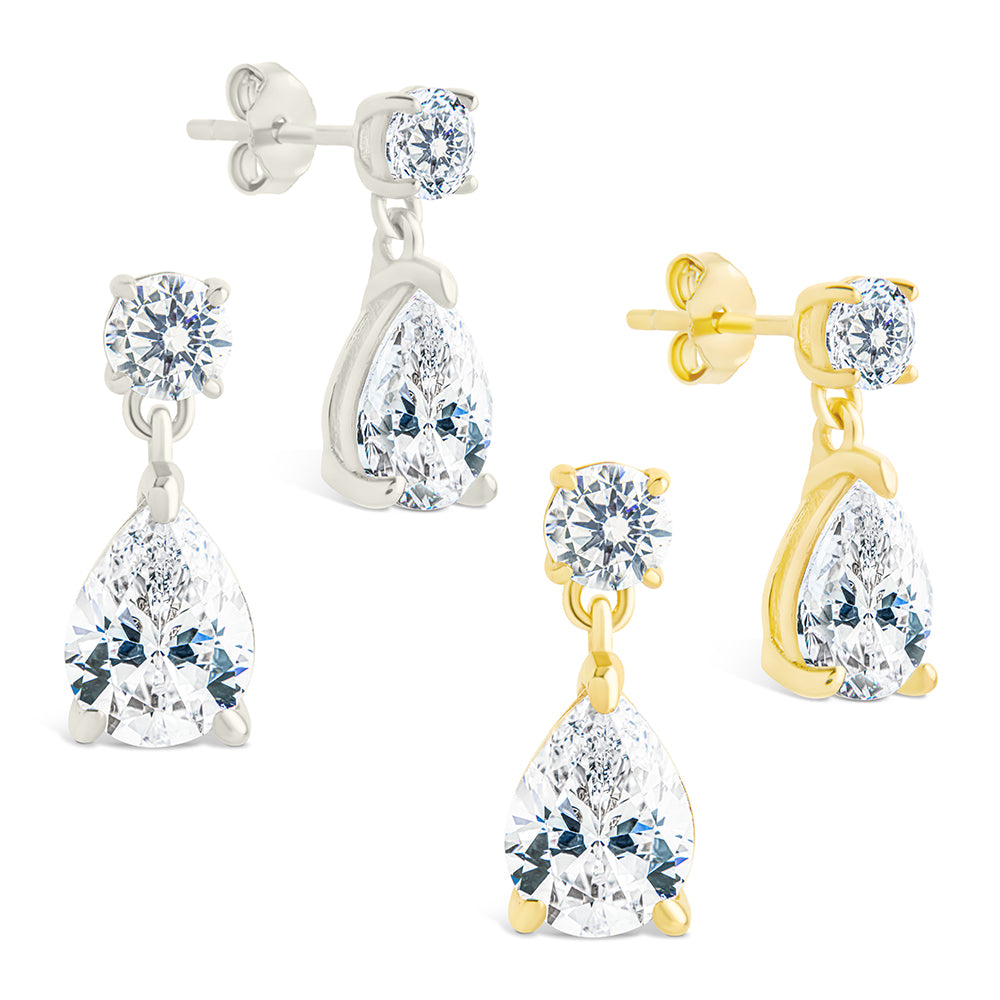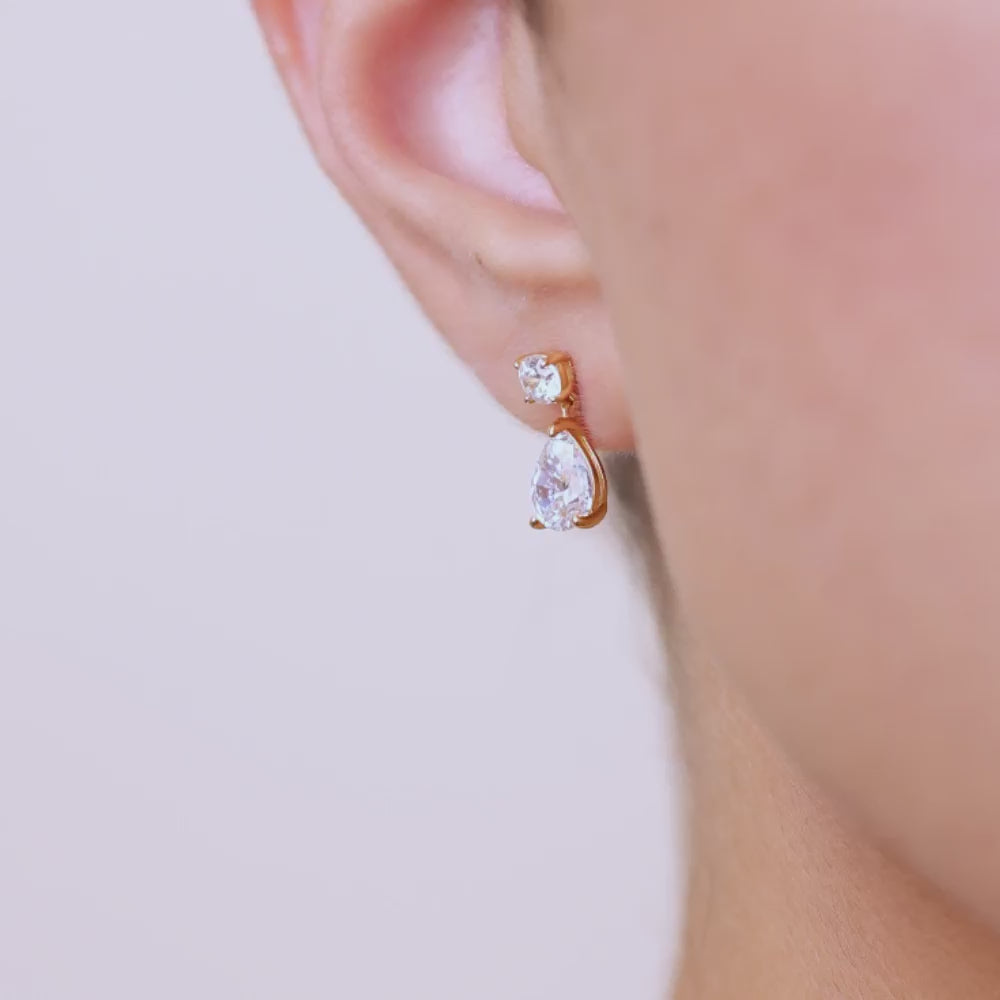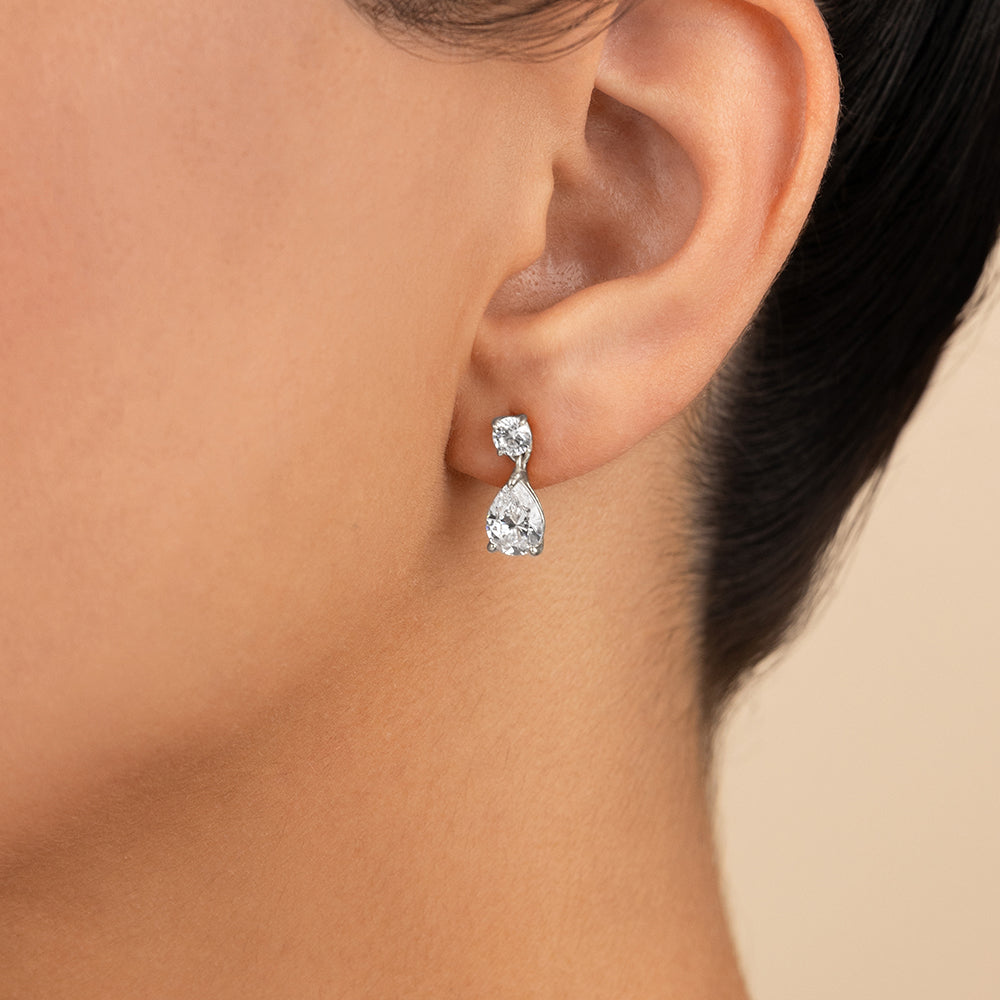 The Sterling Silver Imogen CZ Studs are dainty little treasures with a twist. Made with Hearts & Arrows CZs, they pair a classic round top with a pear-cut drop—an unexpectedly ideal duo you’re sure to keep coming back to for a lifetime.