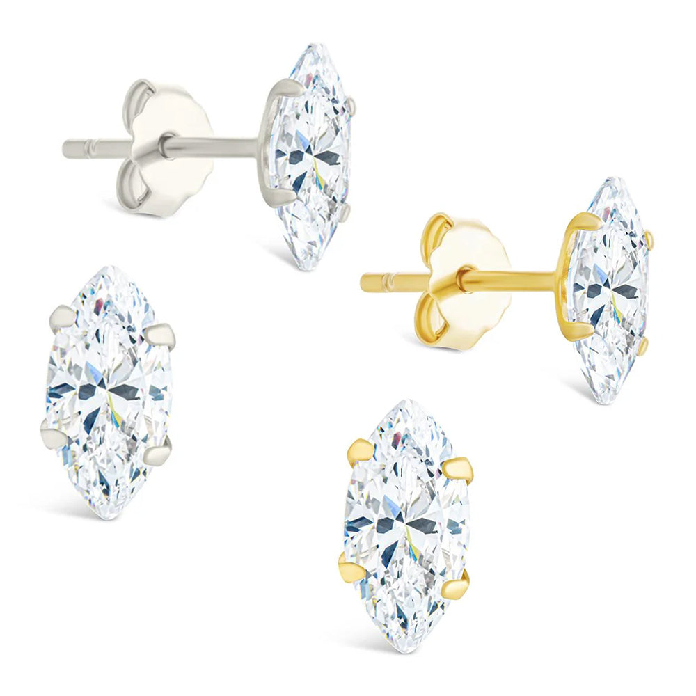 These studs are anything but basic. Featuring Hearts & Arrows, marquise cut stones for incredible brilliance, they catch the light from every angle. Set in sleek, non-tarnishing sterling silver, they’re the ideal mix of classic and modern.
