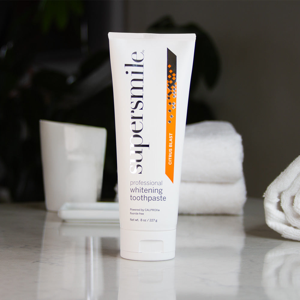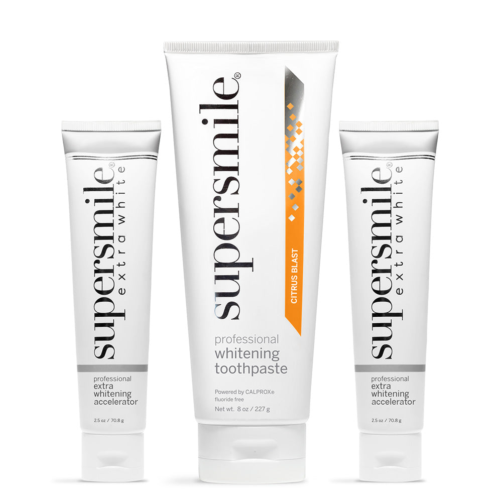 Achieve whiter, healthier-looking teeth in less than a week with the Citrus Blast flavored toothpaste and the Extra White Accelerator. The Accelerator’s concentrated whitening gel works seamlessly with the toothpaste to enhance whitening results.