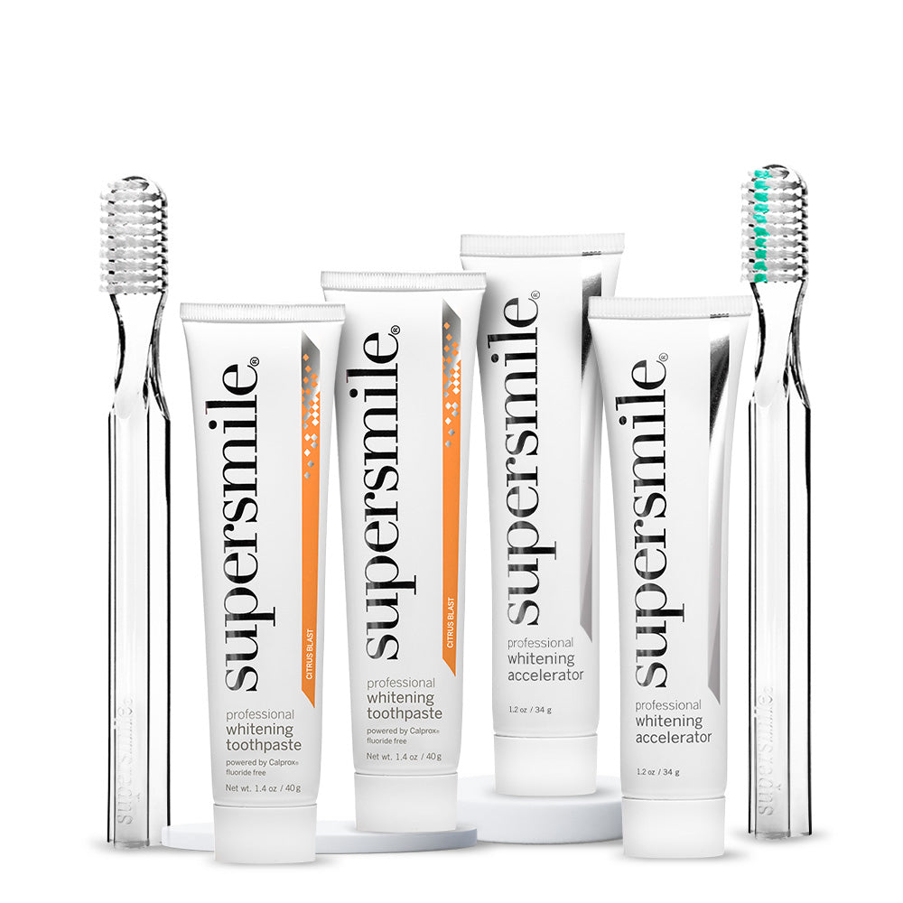 Achieve whiter, healthier-looking teeth in less than a week with the Citrus Blast flavored toothpaste, Whitening Accelerator, and New Generation Toothbrush. The Accelerator’s concentrated whitening gel works seamlessly with the toothpaste to enhance whitening results.
