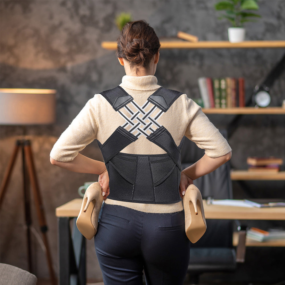 This back support and posture corrector works with your body's natural alignment and keeps you sitting tall all day long. Get the right fit with the adjustable straps and you will feel this support working immediately.