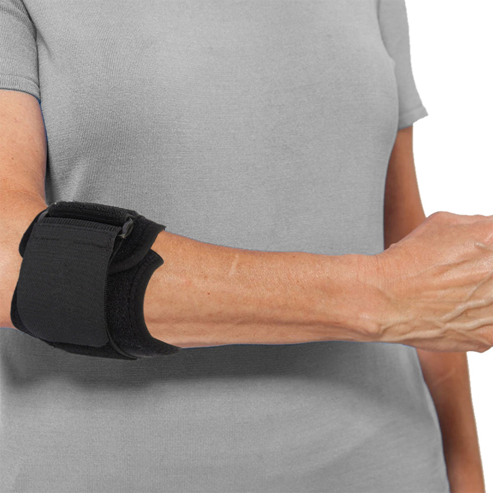 Epicondylitis, also known as tennis elbow or golfer's elbow, occurs from repetitive use of the wrist or elbow. The Epicondylitis Pain Treatment Strap fits smoothly to the arm and warms and compresses the affected elbow. The brace helps reduce painful inflammation and encourages blood flow, speeding up the healing process.