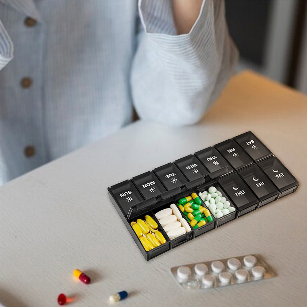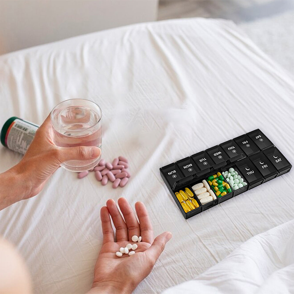 This Weekly Pill & Vitamin Organizer is excellent for dexterity and hand sensitivity issues, featuring compartments that easily pop up. Each compartment has a rounded base for easy pill or vitamin retrieval.